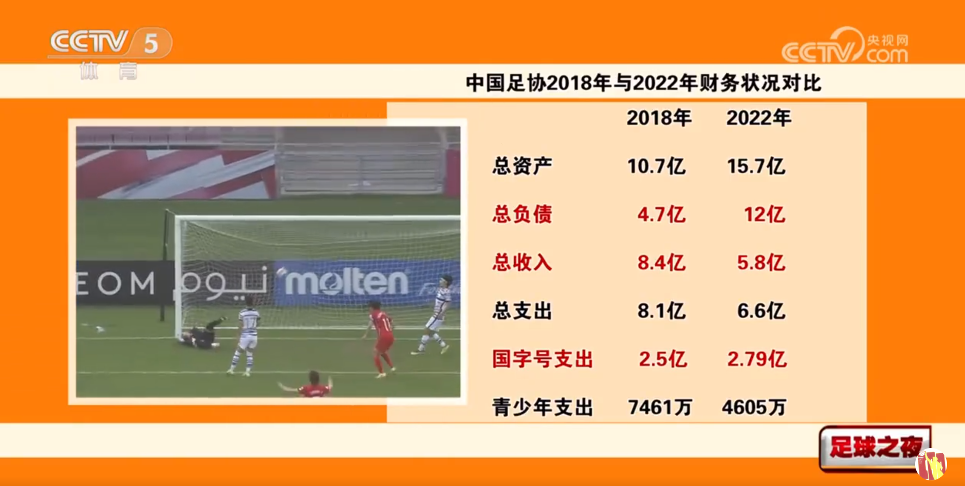 篮球媒体人付政浩在社媒上对中国足协的负债问题发表了自己的看法。根据足协本次换届向理事会公布的财报,让人不禁为之一惊。虽然足协在2022年的营收达到了5.8亿,单论吸金能力在所有体育协会中遥遥领先,但是2022年足协的花费却高达6.6亿,令人触目惊心的是足协的总负债已经高达12亿。