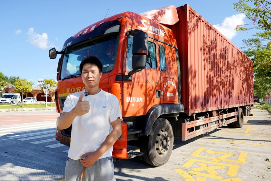 贺孝坤,95后的职业司机,拥有七年驾龄,目前主要从事深圳-杭州-东莞的专线运输,驾驶的车辆是中国重汽豪沃TX 270载货车,搭载潍柴WP6H发动机,6.2L排量可输出270马力,扭矩达到了1100牛米,匹配了中国重汽成熟的10档AMT变速箱,整体的动力输出强劲、平顺且省油。