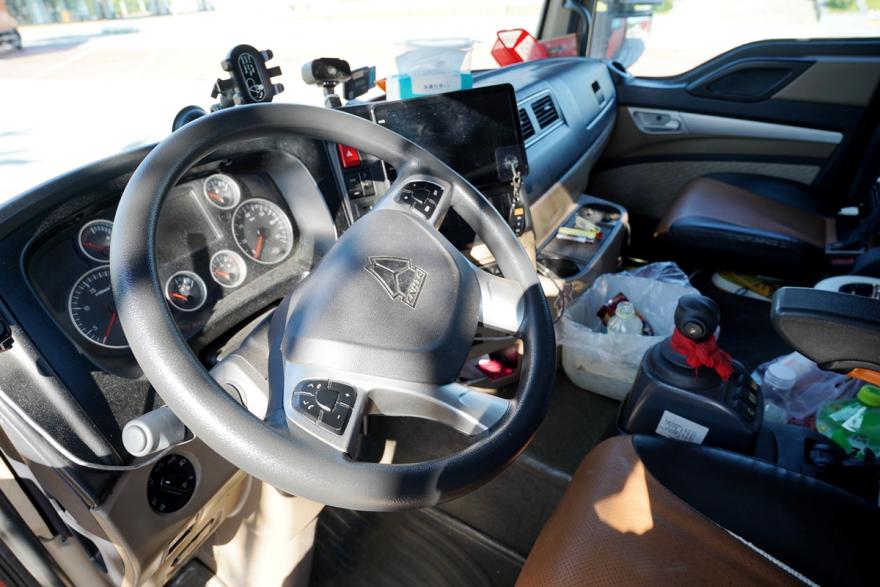 其中贺师傅重点提到了豪沃TX上的气囊减震座椅,不仅滤震性能好,而且还配有扶手和气囊腰托,有助于缓解长时间驾驶的疲劳。在舒适性这方面,豪沃TX良好的驾乘体验同时得到了同车的另一名贺师傅肯定,相比较于他以往开过的车,豪沃TX在整体的噪音控制、驾乘舒适性上都有更大的优势。