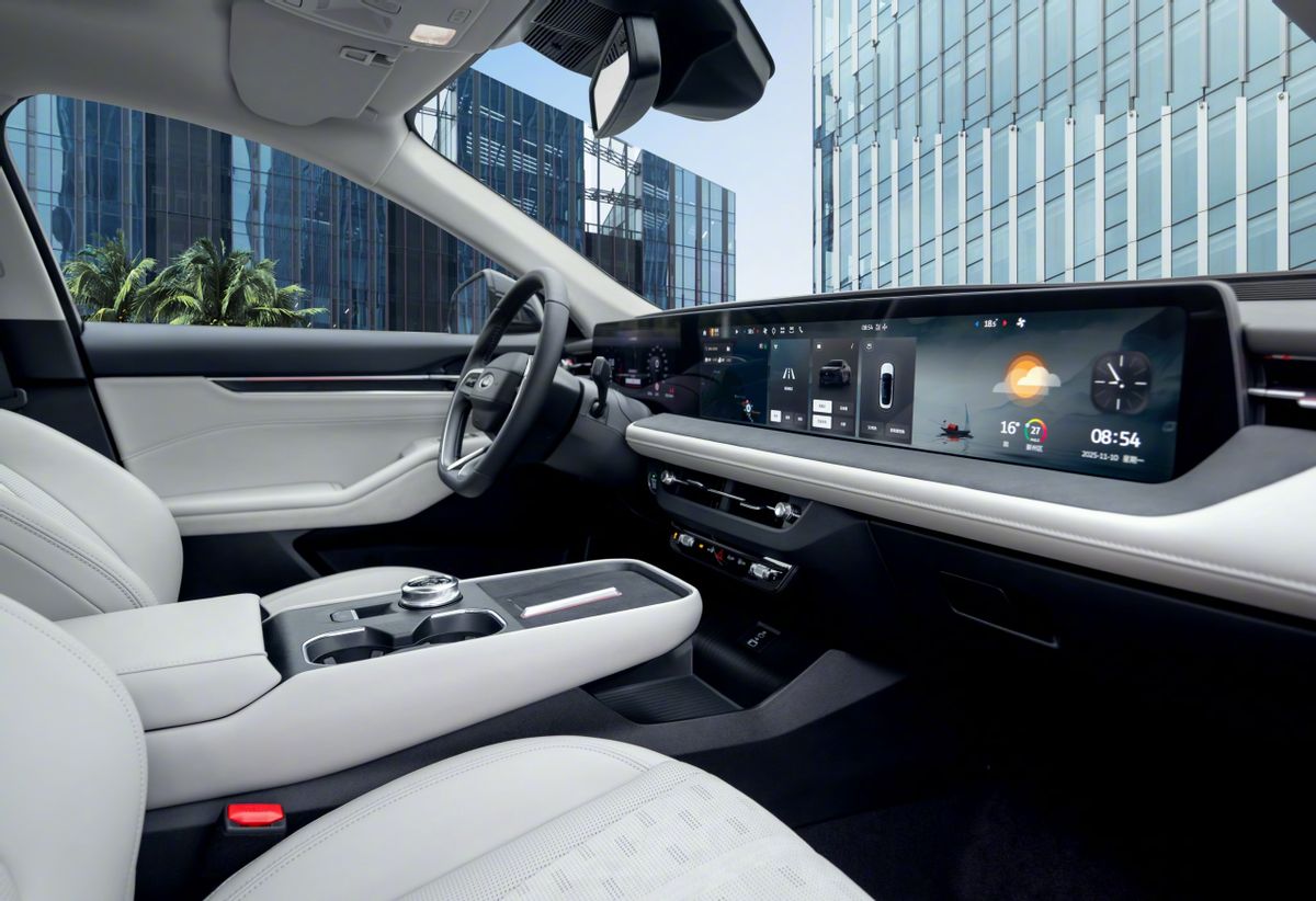 智能化打造上,新车提供最大1.1米超长双联屏,由12.3英寸全液晶仪表盘与27英寸4K中控屏组成,营造出强烈的科技感与视觉冲击力。车机系统搭载福特最新SYNC+智能互联系统,配备高通骁龙8155芯片,运行流畅,响应迅速,支持手机互联、双区语音识别、多媒体娱乐、手机控车等,满足用户对于智能网联的需求。此外,新车中高配车型搭载L2级Co-pilot 360辅助驾驶系统,具备高德地图、自适应巡航、车道居中保持等,提升了驾驶的安全性与便捷性。