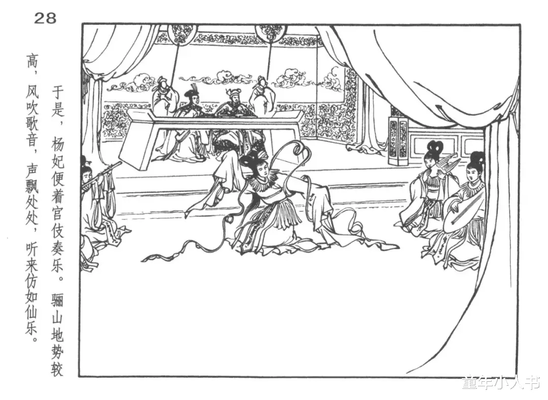 杨贵妃被视为"红颜祸水",但连环画并未简单归罪于她,而是通过她的惊恐与无助,展现个人在历史洪流中的渺小。当鼙鼓声传来,她的荣华富贵瞬间变得脆弱不堪,爱情神话的幻灭。