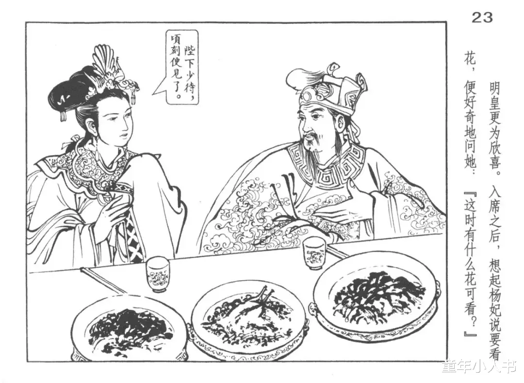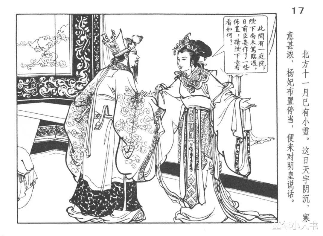 玄宗与贵妃的浪漫化:正史中玄宗晚年昏聩怠政,但连环画保留了他对贵妃的深情,强化了悲剧色彩。