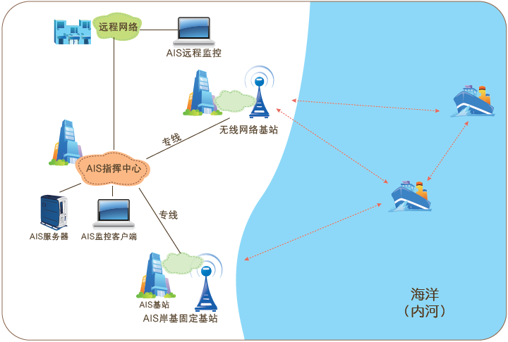 海事部门通过岸基AIS基站组成监控网络,实现对沿海及内河船舶的动态追踪,打击非法采砂、违规航行等行为,提升通航管理效率。