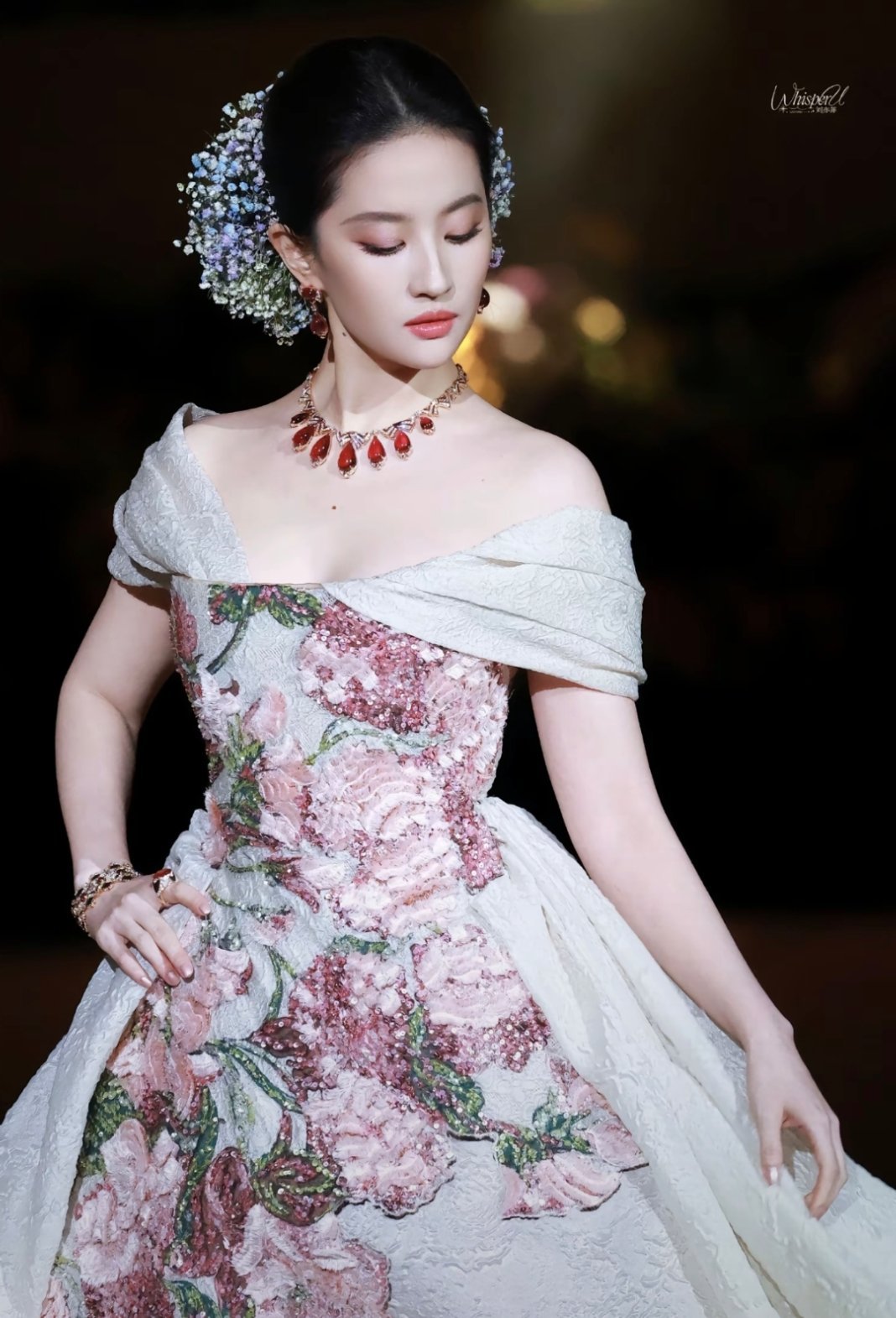 据说,这次刘亦菲的造型团队简直开启了“疯狂扫货”模式。从国际高定到小众设计师的宝藏款,从飘飘欲仙的仙女裙到气场全开的酷飒战袍,20多套礼服堆满试衣间,活脱脱一个“礼服宇宙博览会”。有知情人士爆料,刘亦菲试装时那叫一个讲究,每试一套都要对着镜子优雅地转三圈,还一本正经地问工作人员:“这花是不是刚从花界偷渡过来的?”“这裙摆一甩,能飘出十里外去参加花界大会不?”最终,她选定了一套Elie Saab 2025秋冬高定系列裸色刺绣礼服,搭配满天星簪花盘发和宝格丽高级珠宝,一出场就被媒体疯狂打call:“这哪是走红毯啊,分明是花神降临人间!”