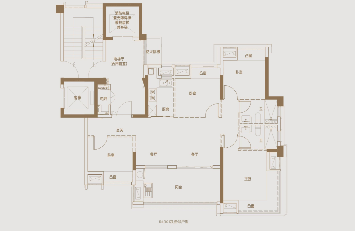 主卧也做了L型窗做赠送,南北侧的卧室厨房,都做了飘窗赠送,整体的得房率不错。