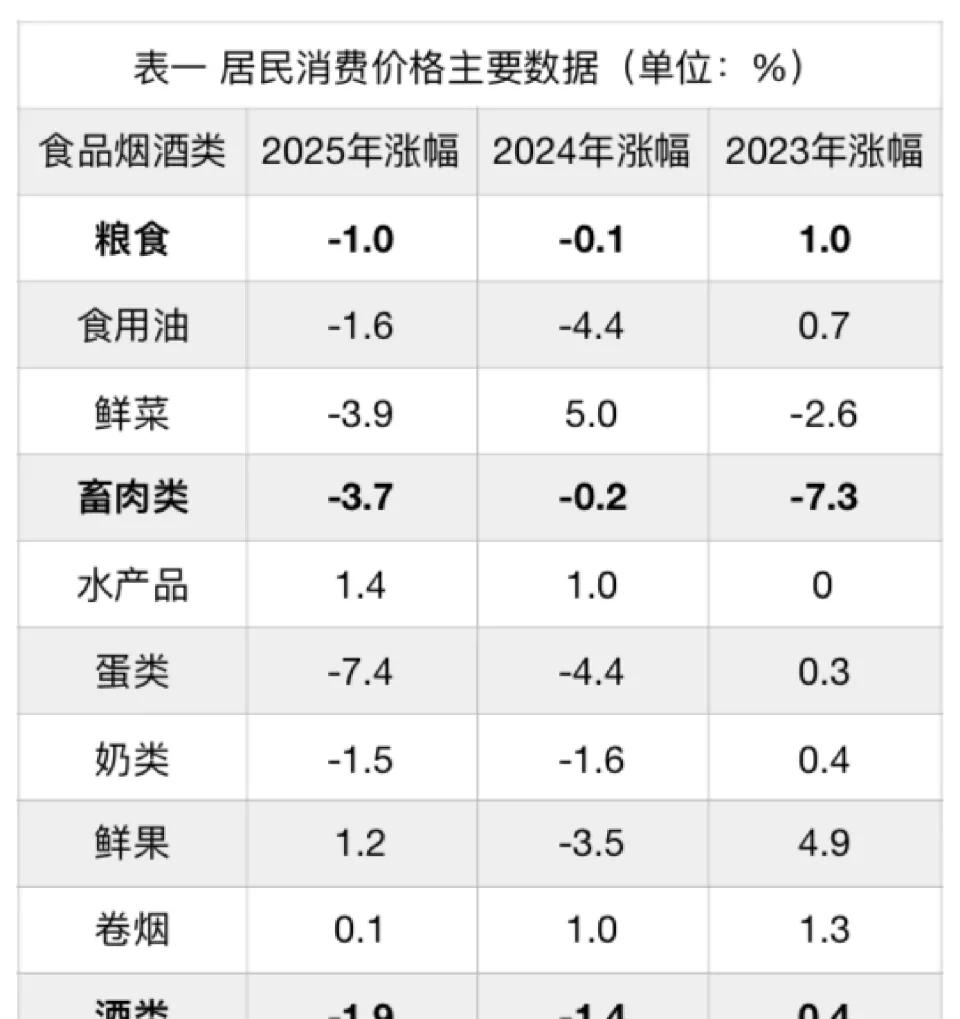 2025年全国居民消费价格指数(CPI)最终定格在同比0%的水平线,全年物价水平与2024年分毫不差,这一近十年罕见的低位数据,看似平淡却暗藏国内消费市场的冷暖乾坤。尤其值得琢磨的是,年末12月CPI同比大涨0.8%,创下2023年3月以来的最高涨幅,看似矛盾的两个极端,恰好勾勒出全年物价走势的微妙轮廓。当我们拆解食品烟酒这一CPI权重板块,10个细分品类中鲜见的“3正7负”格局,更长周期里畜肉类、酒类价格的趋势性涨跌,无不折射出供需关系的深层调整,也为解读当前经济态势提供了关键窗口。