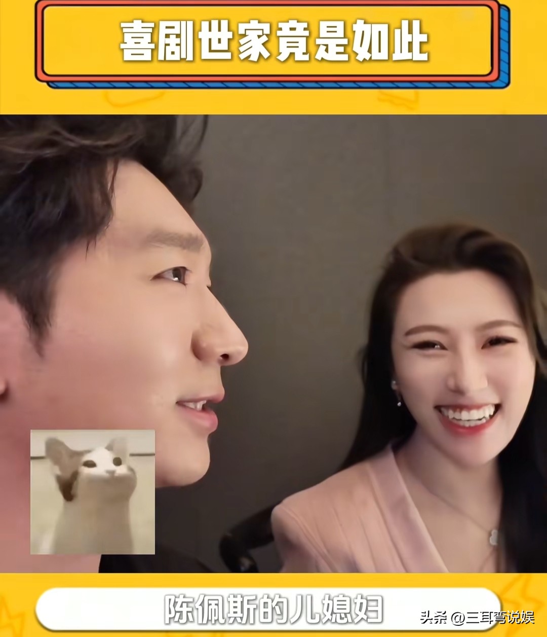 陈佩斯儿子陈大愚与张山女儿张嘉芸是表兄妹,但经常被误会为夫妻关系,兄妹俩在线辟谣,张嘉芸并不是陈佩斯的儿媳妇,而是亲外甥女。