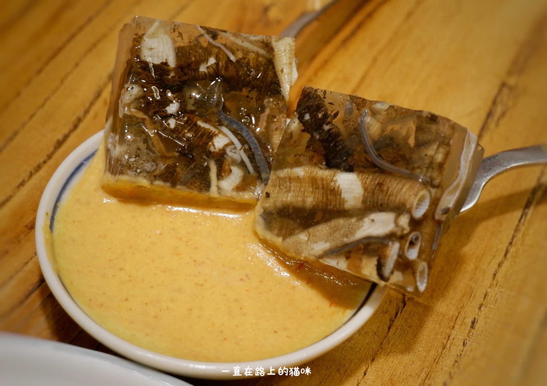 雪蛤:闽南人过年餐桌上都会有的菜,这个烫煮的时间太难把握了,过久就熟了,我喜欢他家这个刚好有点熟但还带血的嫩嫩的口感,浸泡入味,据说女生要多吃这个补气血。