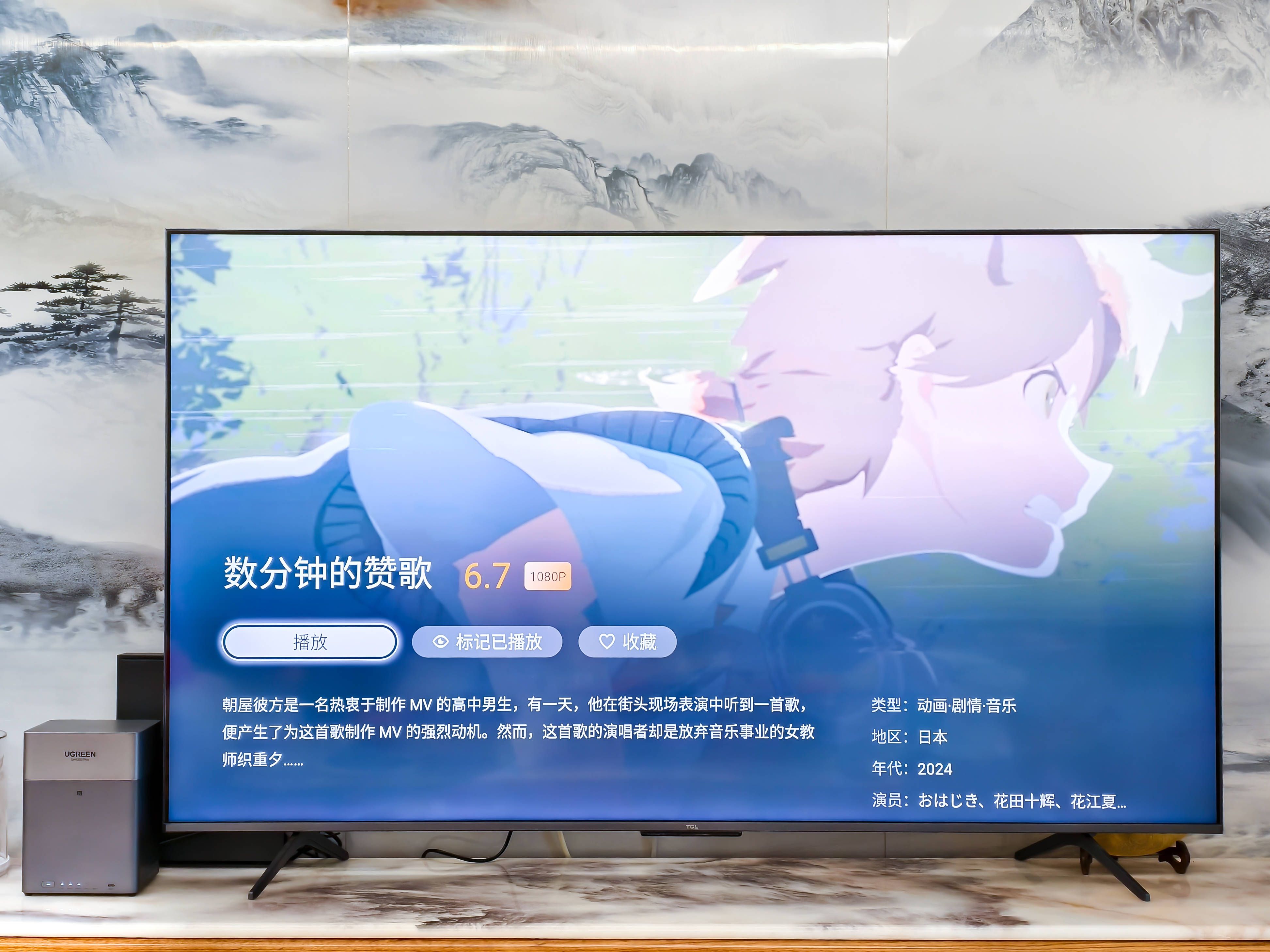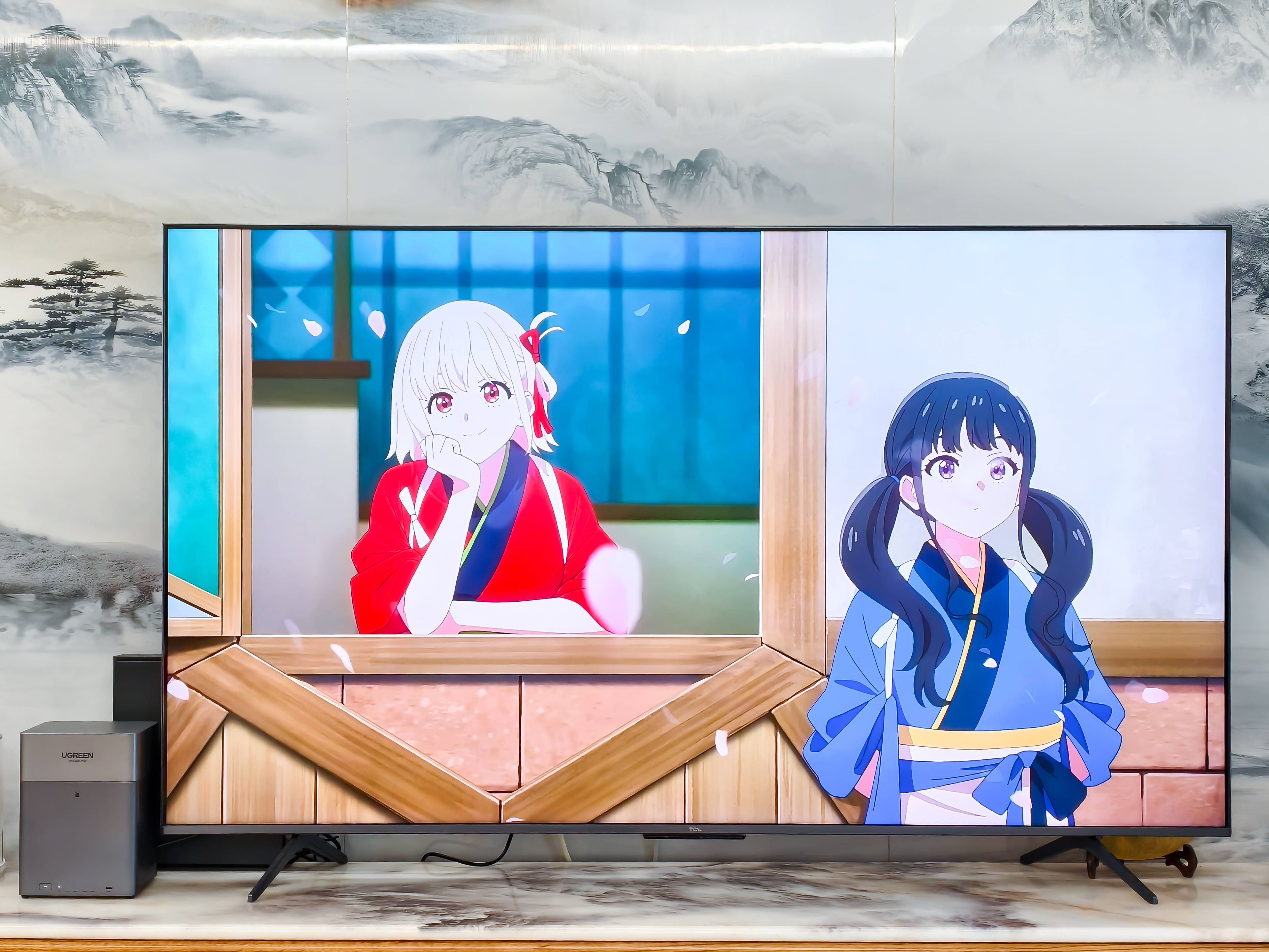 播放动画片非常流畅,不会有卡顿,而且比我平时窝在书房看小屏幕舒服多了,画面上的每一瓣樱花、角色细微的表情都能一清二楚,果然画面大就是正义。