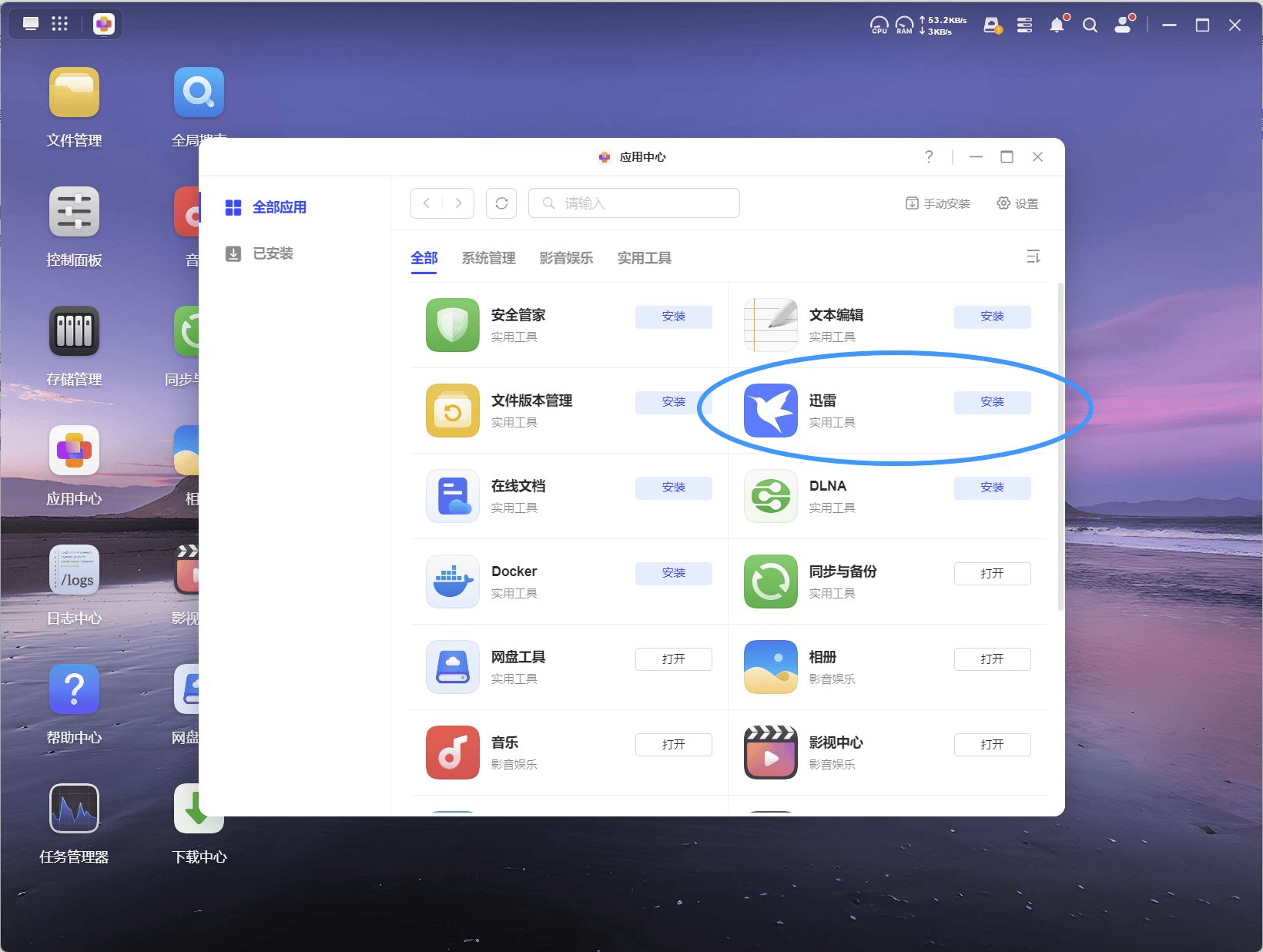 除了网盘工具以外,绿联DH4300 Plus还提供了主流下载工具(如迅雷)的核心功能。用户只需登录个人账号,即可立即使用下载服务。