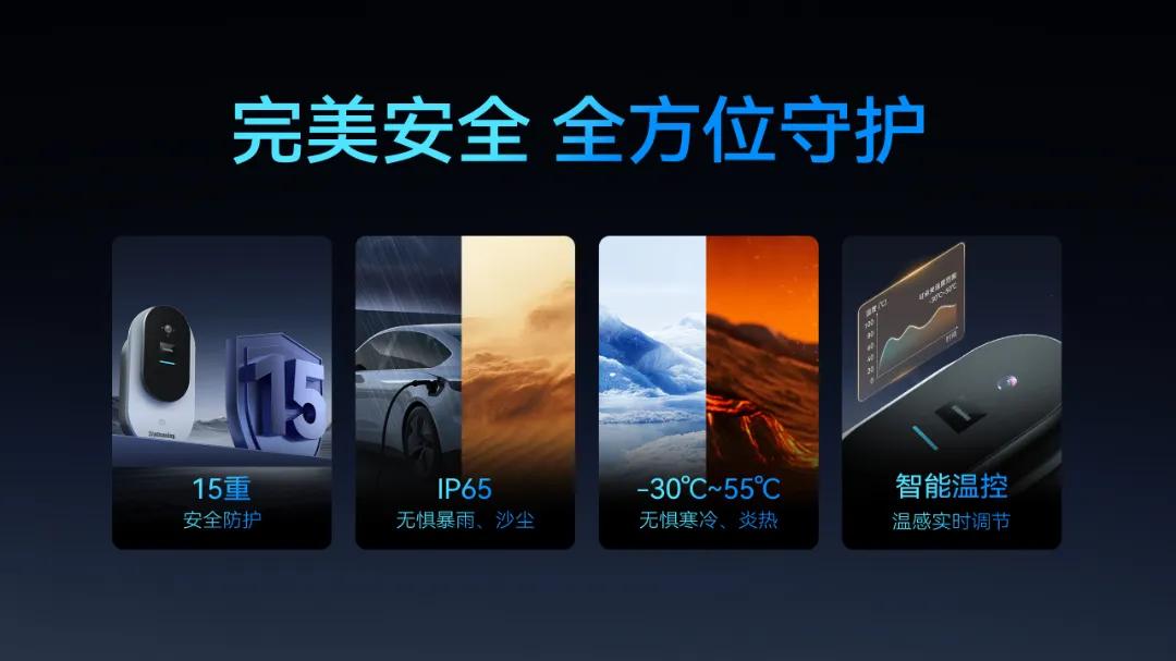 在安全守护方面,天曜 WE P7 Ido 境界版将安防监控从盲区变成了全方位的“明桩”。它集成了专业级摄像头和大光圈镜头,配合红外夜视功能,确保即便是深夜时段,画面依然清晰可见。140度的大广角覆盖,让每一次充电行为都在安全视野之中。同时,产品内置了 15 重安全防护机制,从基础的过流、过压保护到复杂的漏电、防雷保护一应俱全。更值得一提的是其智能温控系统,一旦监测到温度异常会立即报警并向用户发送提醒,这种全方位的守护能力,使其完全适应居住区、办公区以及商业、工业、休闲中心等“两区三中心”的复杂环境。