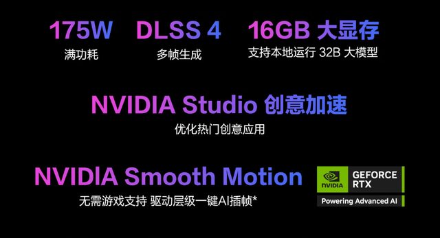 当然,仅靠强大CPU还不够。ROG枪神9 Plus 超竞版以“双旗舰”为核心,构建完整性能闭环,其内置的 RTX 5080 独立显卡可以轻松驾驭主流的3A游戏。其中内置的DLSS 4的多帧生成技术能够1帧生成最多3帧的AI帧,显著提升游戏帧率。而第四代RT Core在光线追踪性能方面有显著提升,能够更准确地模拟光线在场景中的反射和折射,提升游戏画面的真实感。