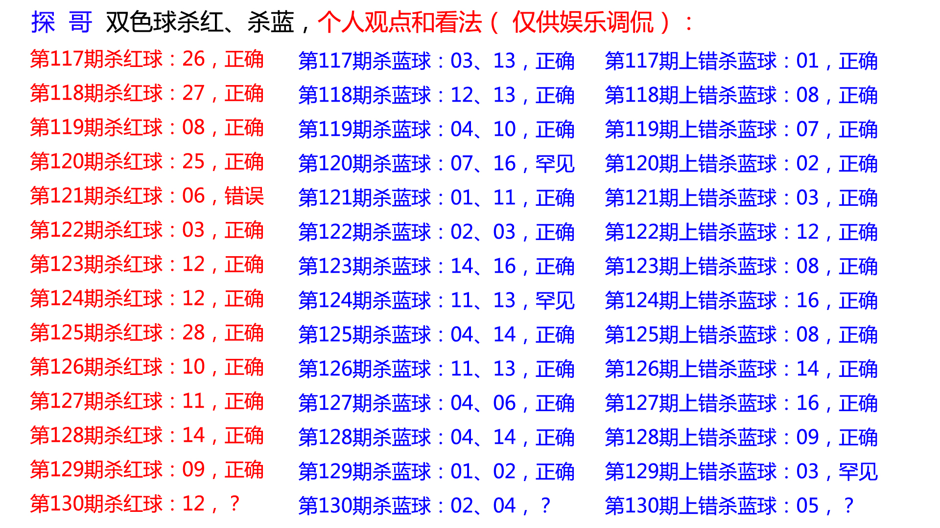 第130期上期错误杀蓝球:05;