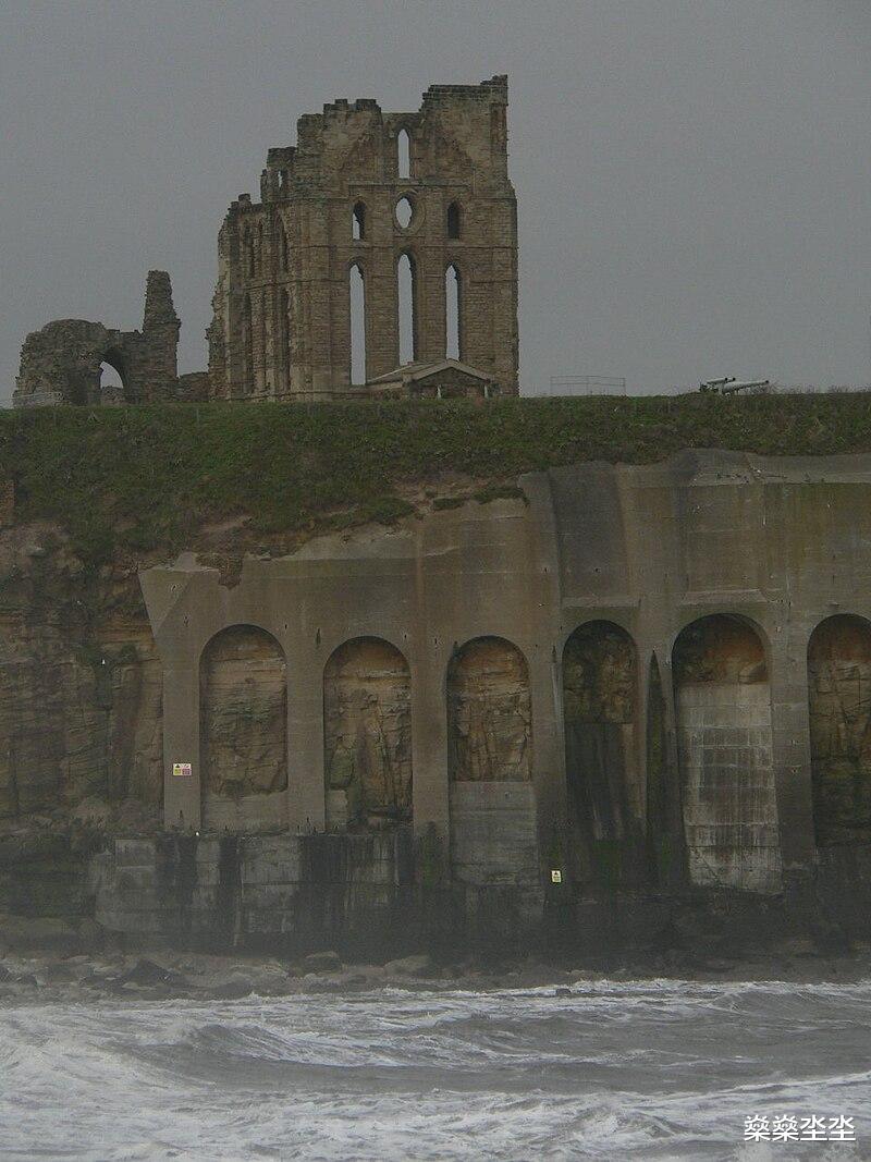从北海望去的泰恩茅斯修道院, 1322 年灾难性的战役之后,伊莎贝拉曾在这里寻求庇护,躲避苏格兰军队
