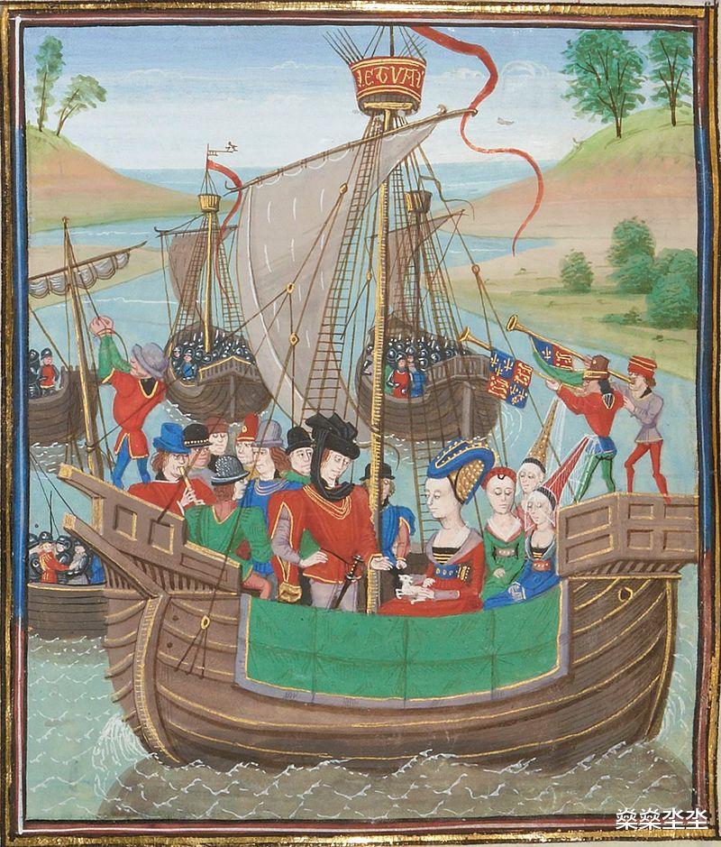 伊莎贝尔前往英国的途中,15世纪的书籍插图