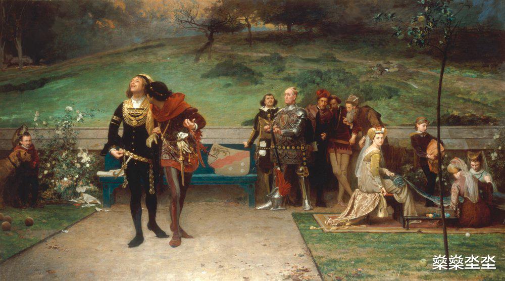 英国艺术家马库斯·斯通于 1872 年创作的一幅画作描绘了爱德华二世与左边的加维斯顿嬉闹的场景