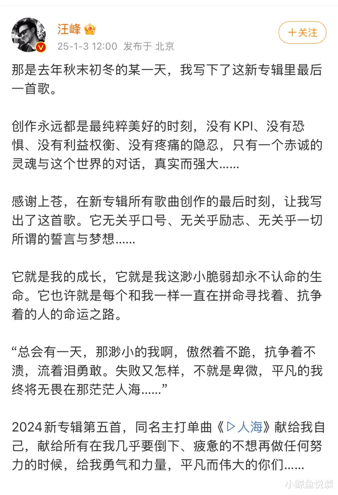 1月3日,发生了一件大事情,那就是——汪峰发新歌了!