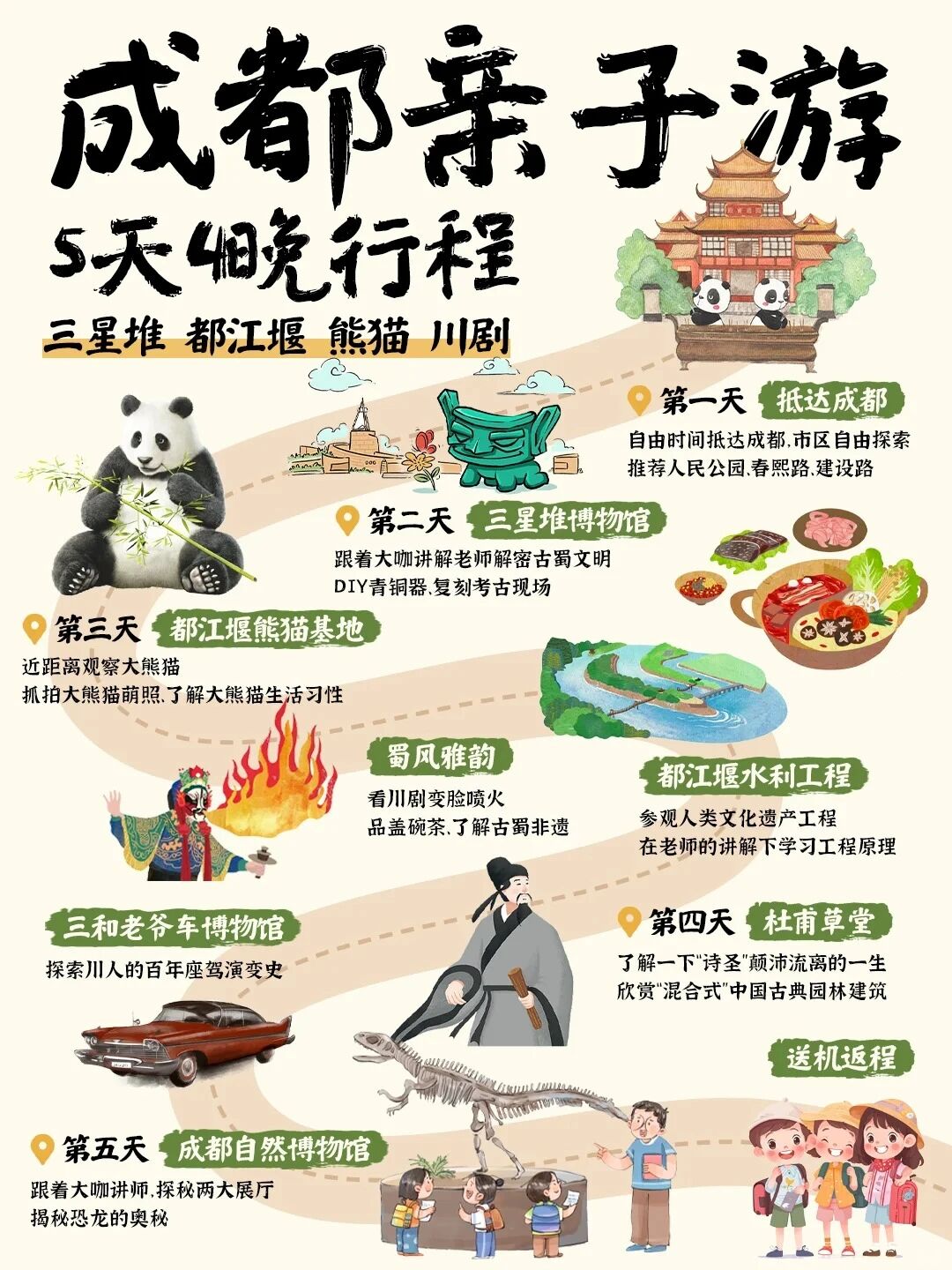 🚄交通攻略:重庆到成都高铁约1.5小时,西安到成都约4小时,广州到成都约6小时,市内地铁覆盖主要景点,熊猫基地有专门的旅游专线,非常方便。