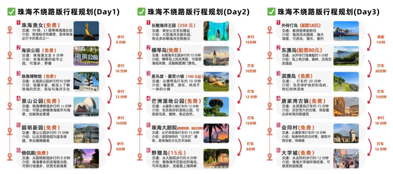 🚄交通攻略:广州到珠海高铁约1小时,深圳到珠海约1.5小时,佛山到珠海约1.5小时,市内到长隆有专门的旅游专线,打车也很方便。