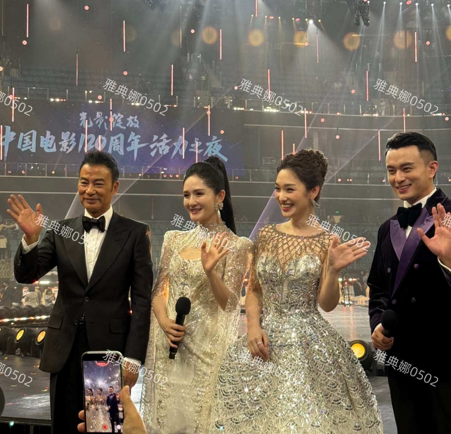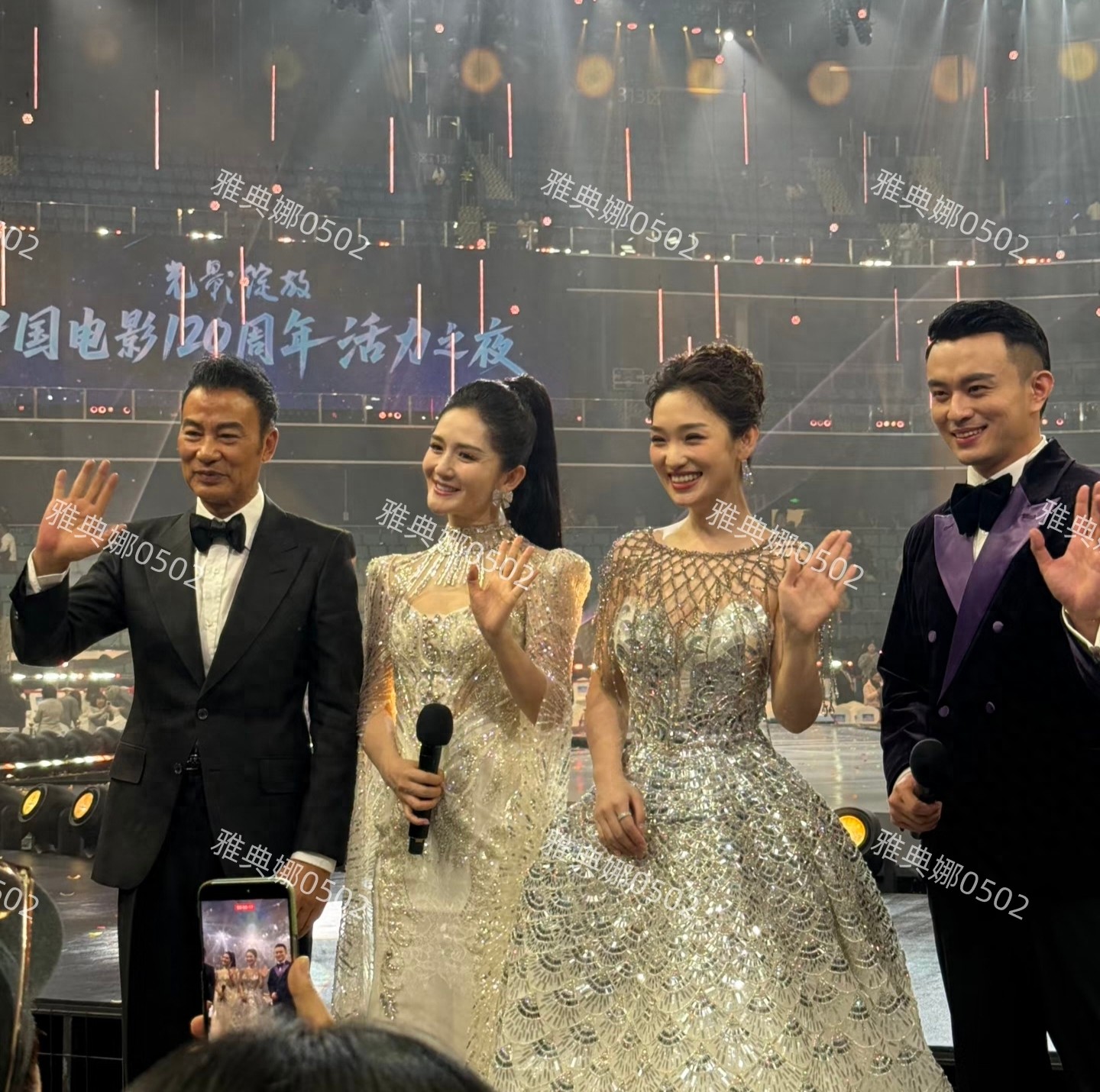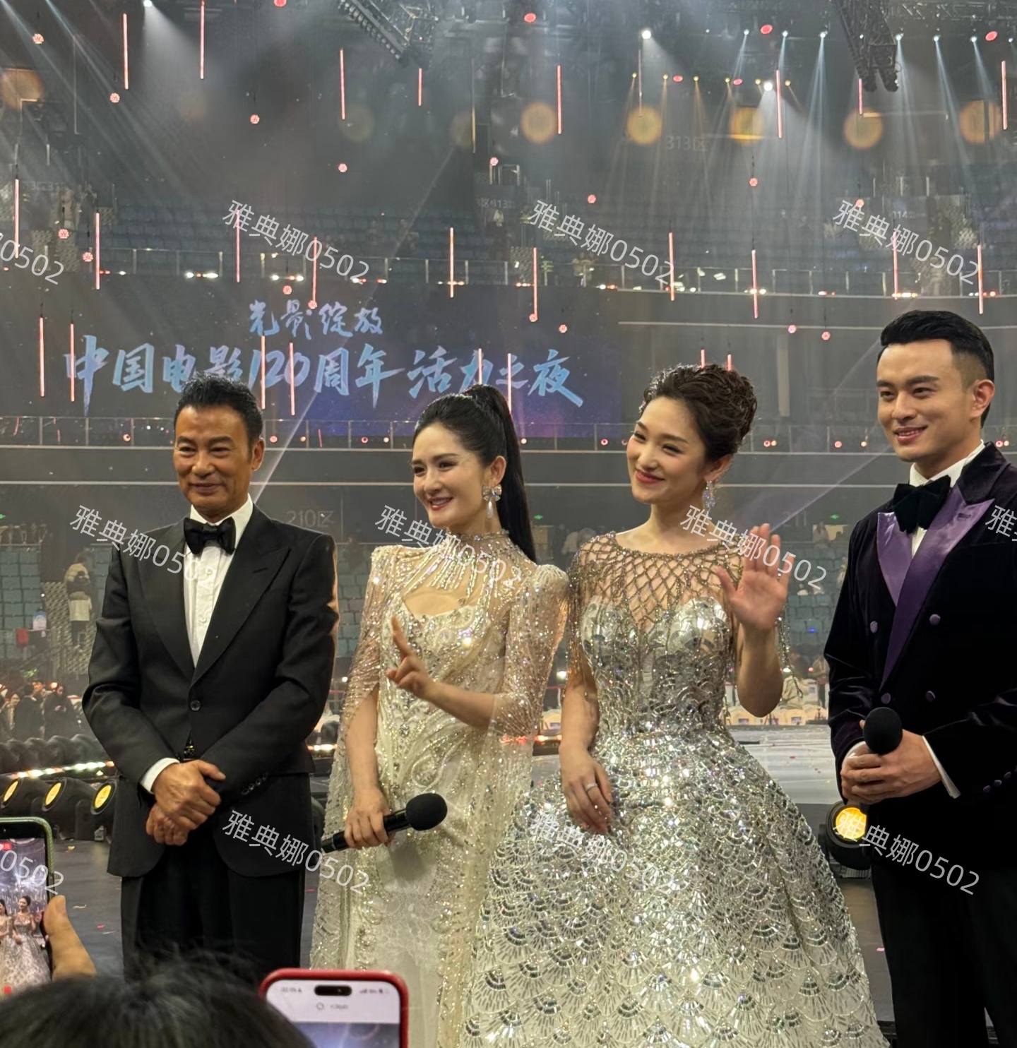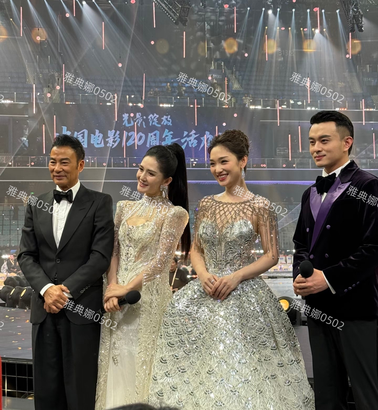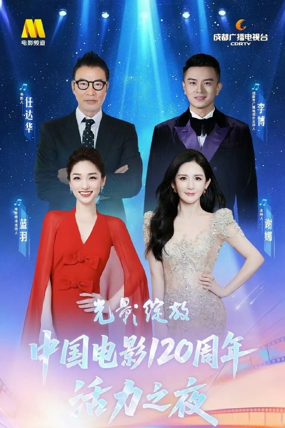 中国电影120周年活力之夜在成都举行,这场晚由谢娜,电影频道主持人蓝羽,著名影星任达华,和成都电视台的主持人李博一起主持。