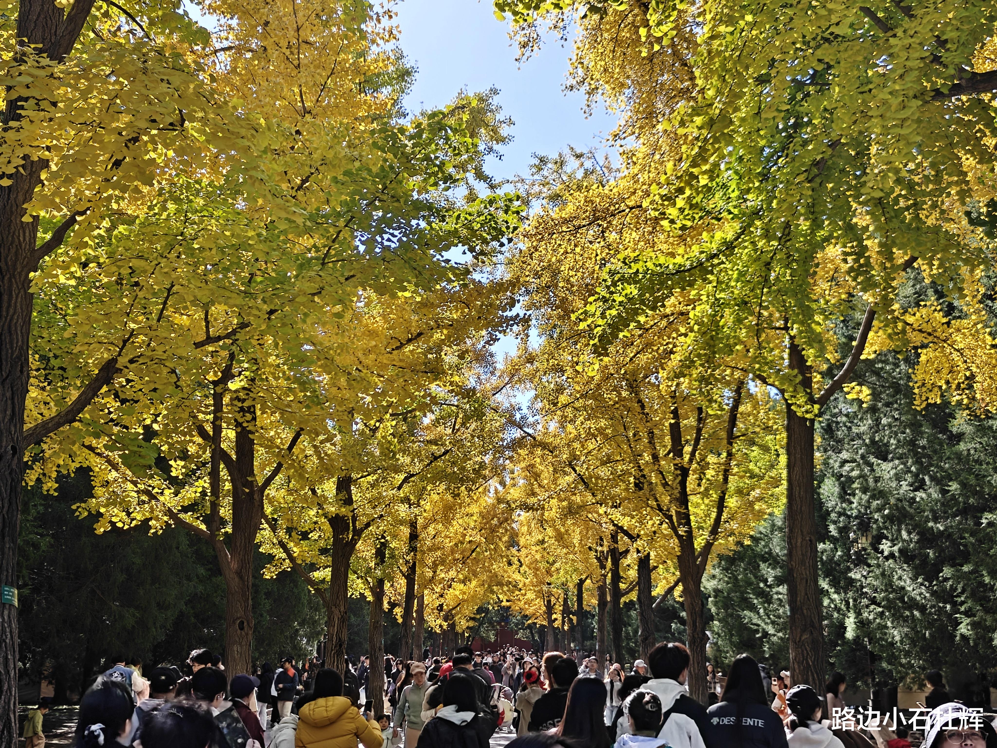 我小时北京的银杏树不算多,多是零散分布在院落街旁。近些年银杏作为景观树被大量种植,才有了如今北京深秋片片金黄的景致。地坛里的银杏以前未曾留意,如今公园专门举办银杏节,倒让人多了几分新鲜感。
