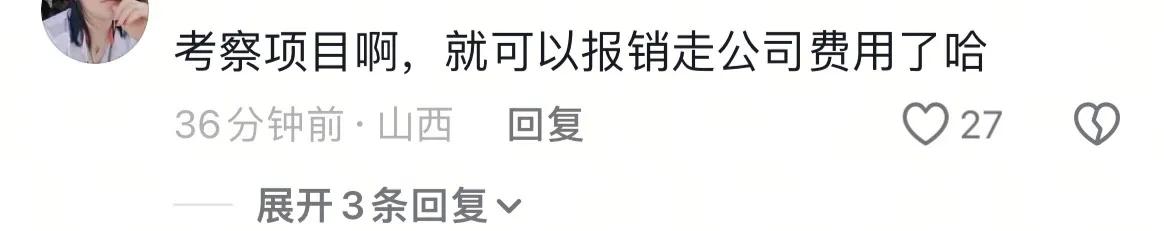 网友说: 考察项目啊,那就可以报销走公司费用了哈。还有网友说:几十万的费用,这是给有钱人家的小孩准备的吧?不过也有网友觉得没问题,称老板出去玩没什么不对的,有钱谁都会享受,打工人好好打工赚钱就行了,别眼红老板。