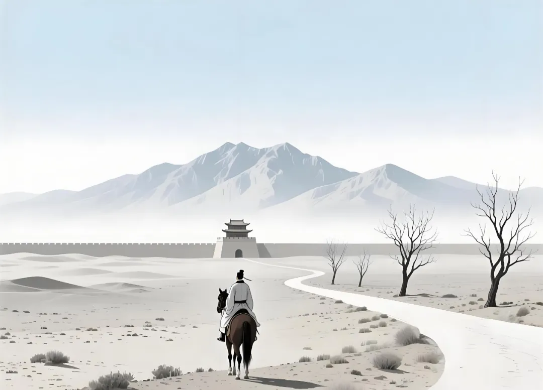 在这里,我苦学三载,随后仗剑去国,西上长安。寒门子弟,难以谋仕,数封拜帖被拒后,我有了从戎之心,遂赴河陇、出玉门,直奔塞外。