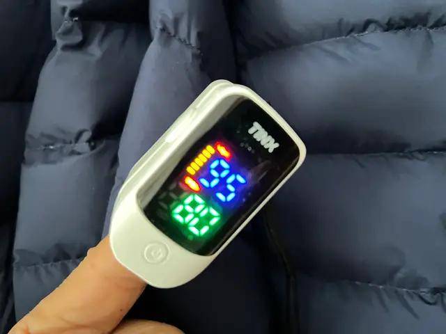 结果查看:仪器屏幕显示了血氧饱和度(SpO2)和脉搏数(PR)等数据。一般来说,血氧饱和度值应大于95%,若低于94%,应及时就医。