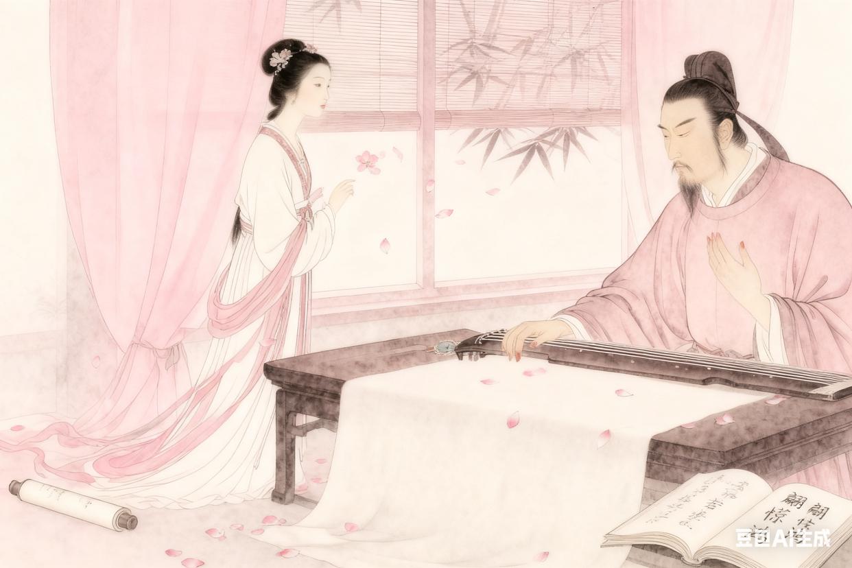 殷仲堪走过去看,只见画上的自己侧对着琴,眼帘微垂,额前的发丝垂下来,刚好遮住眼睛,背景是窗外的竹林,竹叶在风中轻摇,像在和琴声应和。“你这是……”殷仲堪的声音有些发颤。顾恺之笑着指画:“轻云蔽日,不是更好看吗?”后来有人问他,为何不直接画眼疾,他说:“画者,当存人颜面,更存人风骨。”这话被他写进《论画》里,纸页上还留着当时滴下的墨渍,像一颗小小的泪。