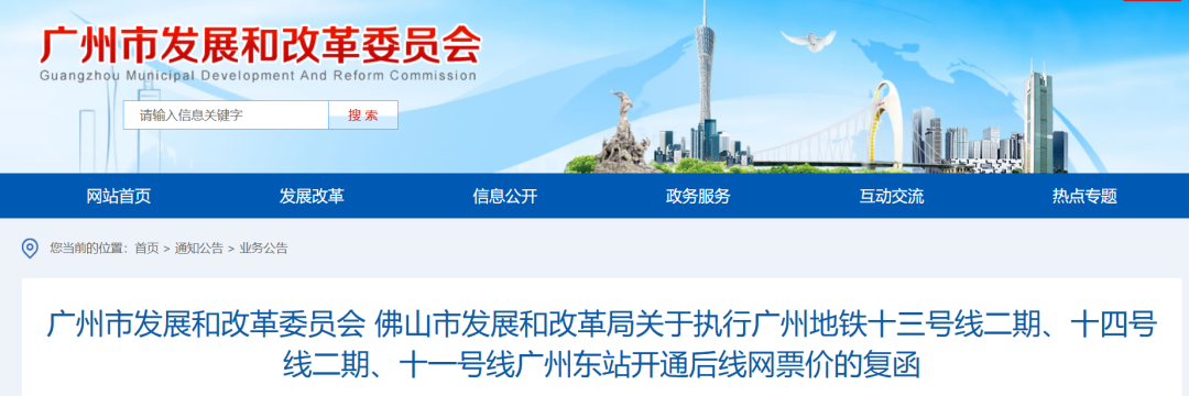 最近,广州市发展和改革委员会、佛山市发展和改革局正式公布了广州地铁十三号线二期、十四号线二期、十一号线广州东站票价!附件