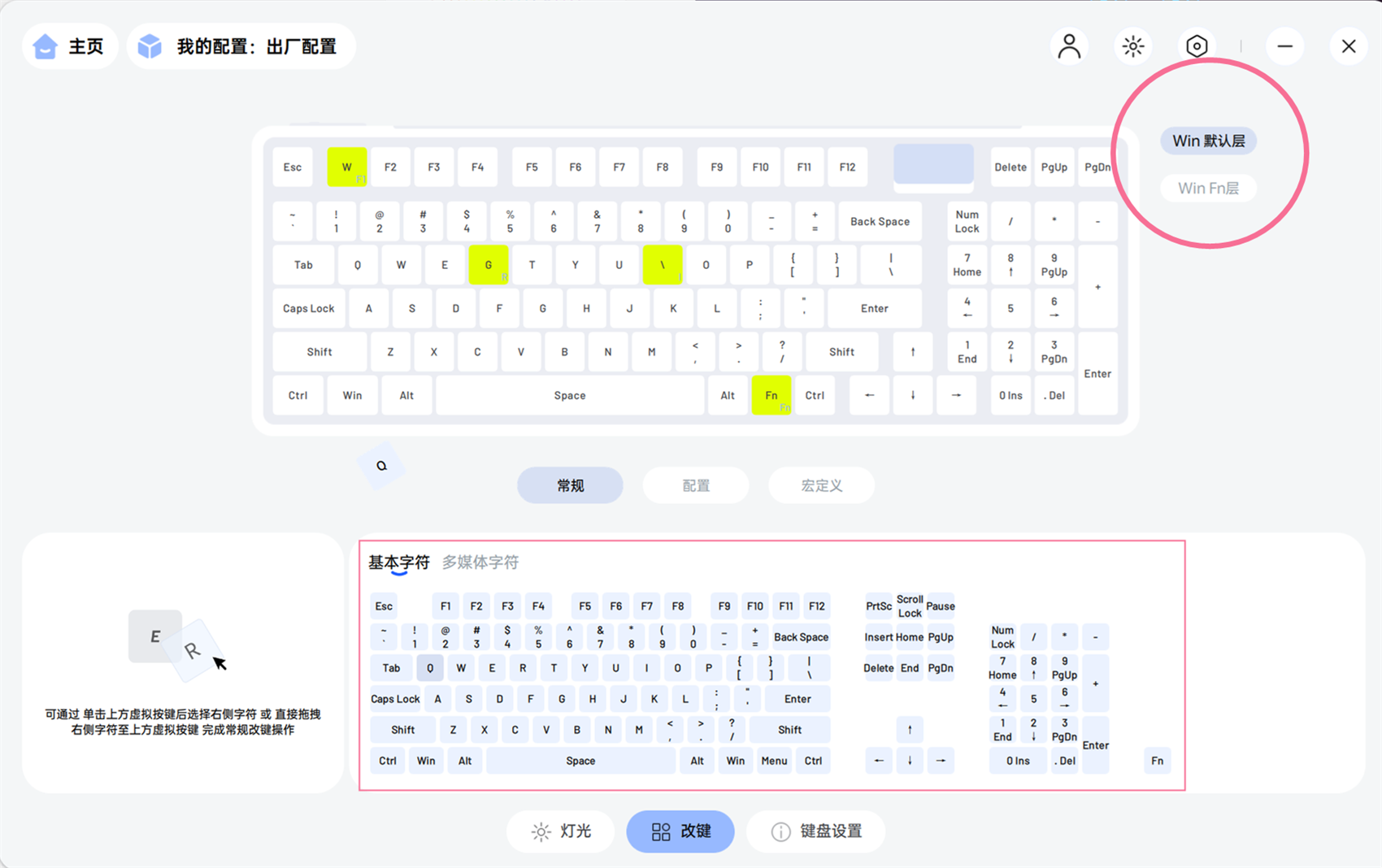 改键功能是一个可发挥DIY空间很大的功能,在Win默认层,你可以更改96个按键的功能,换键帽、换对应的输入功能,可以创造出属于自己习惯而且独一无二的键盘。