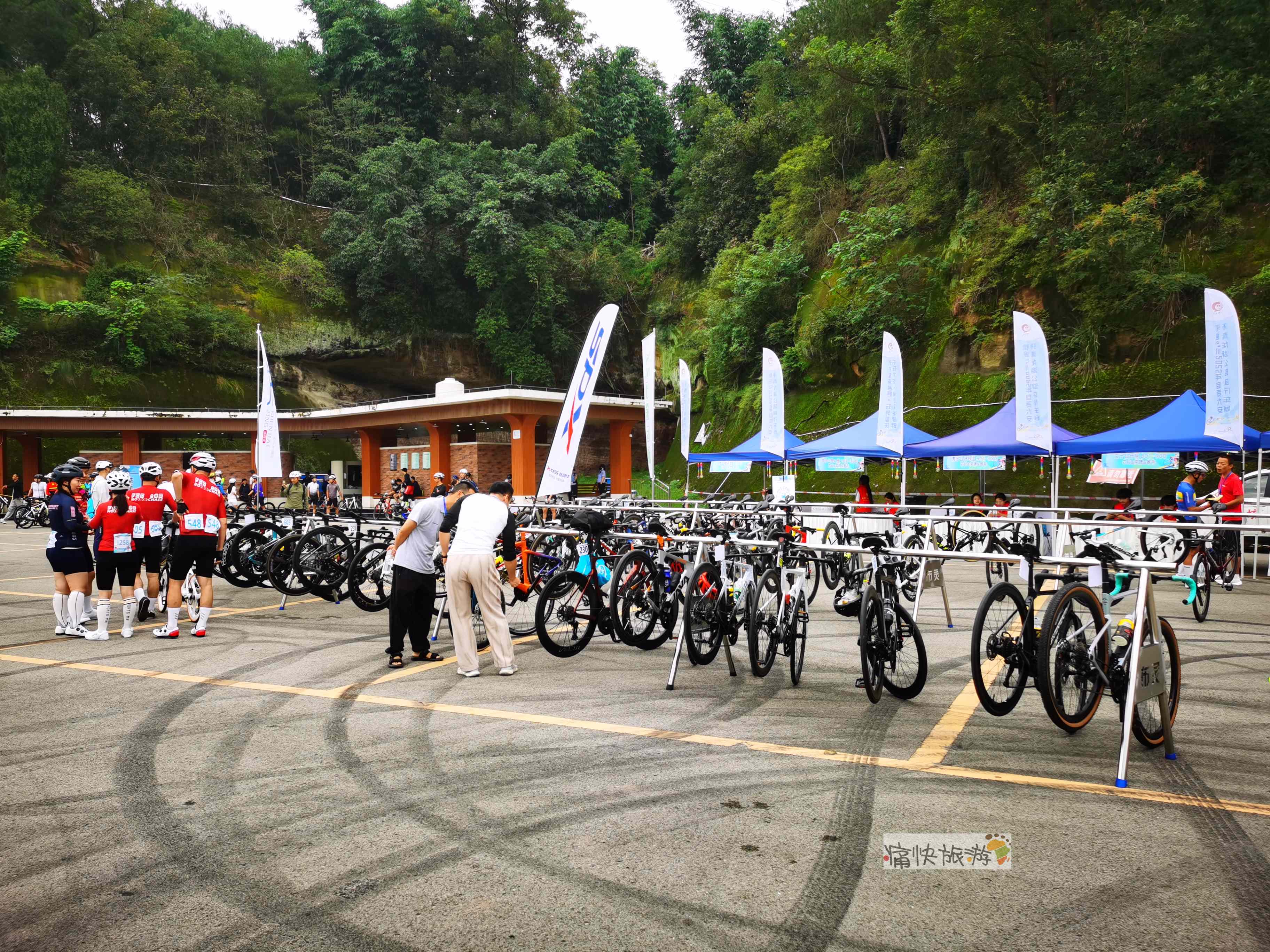 其他候场选手也没有闲着,不少人在自行车停放处对各种车型进行交流。