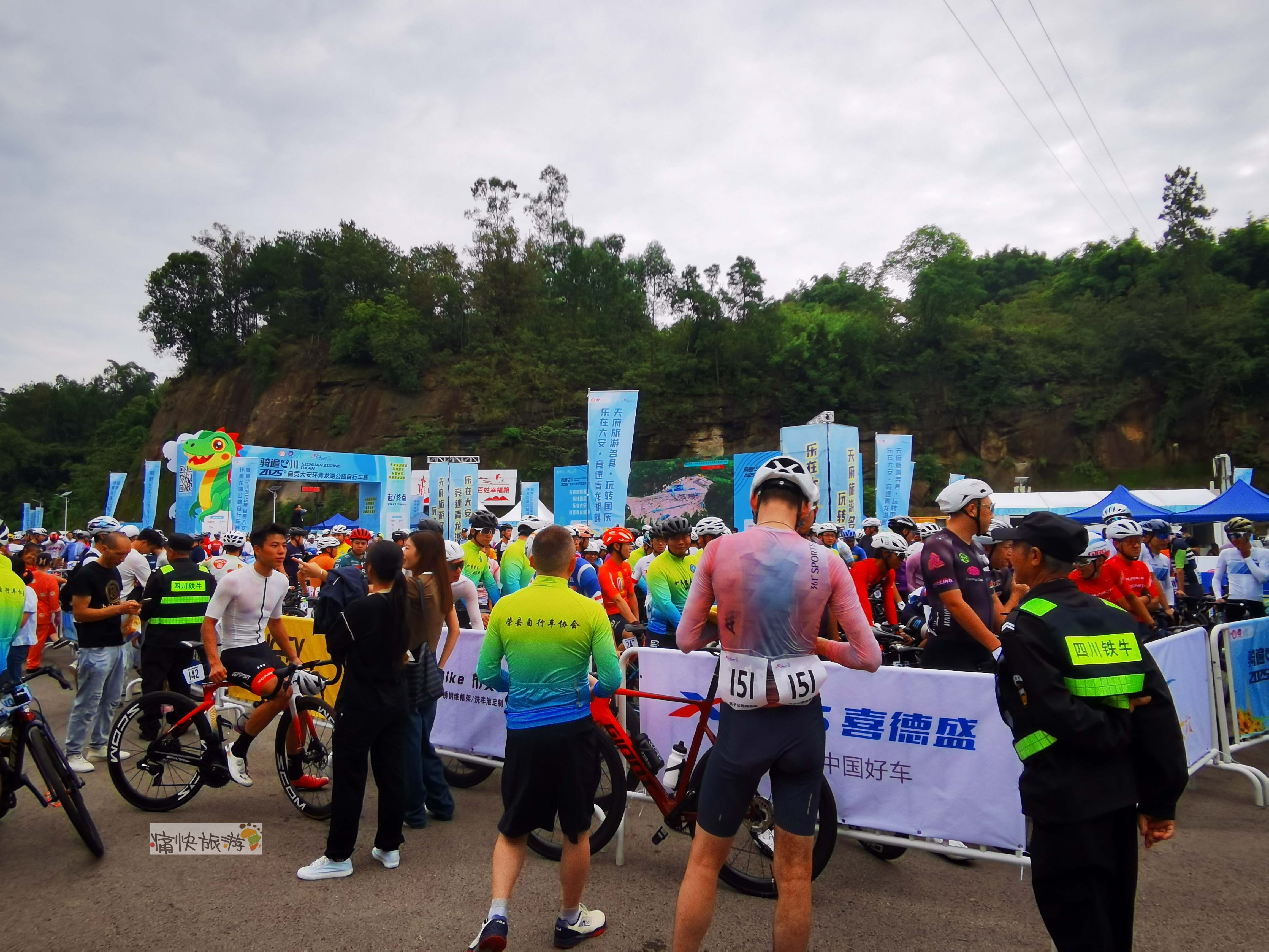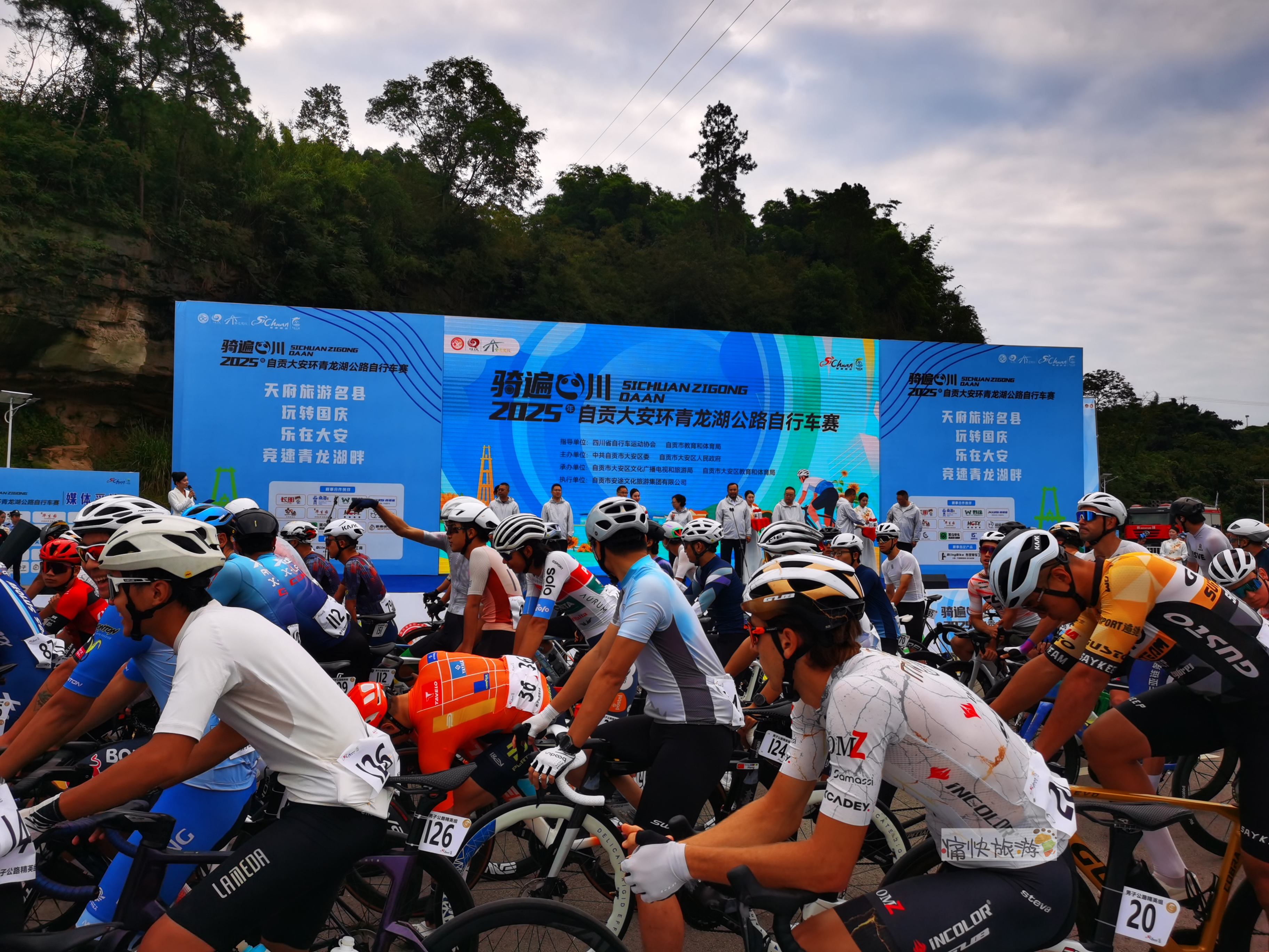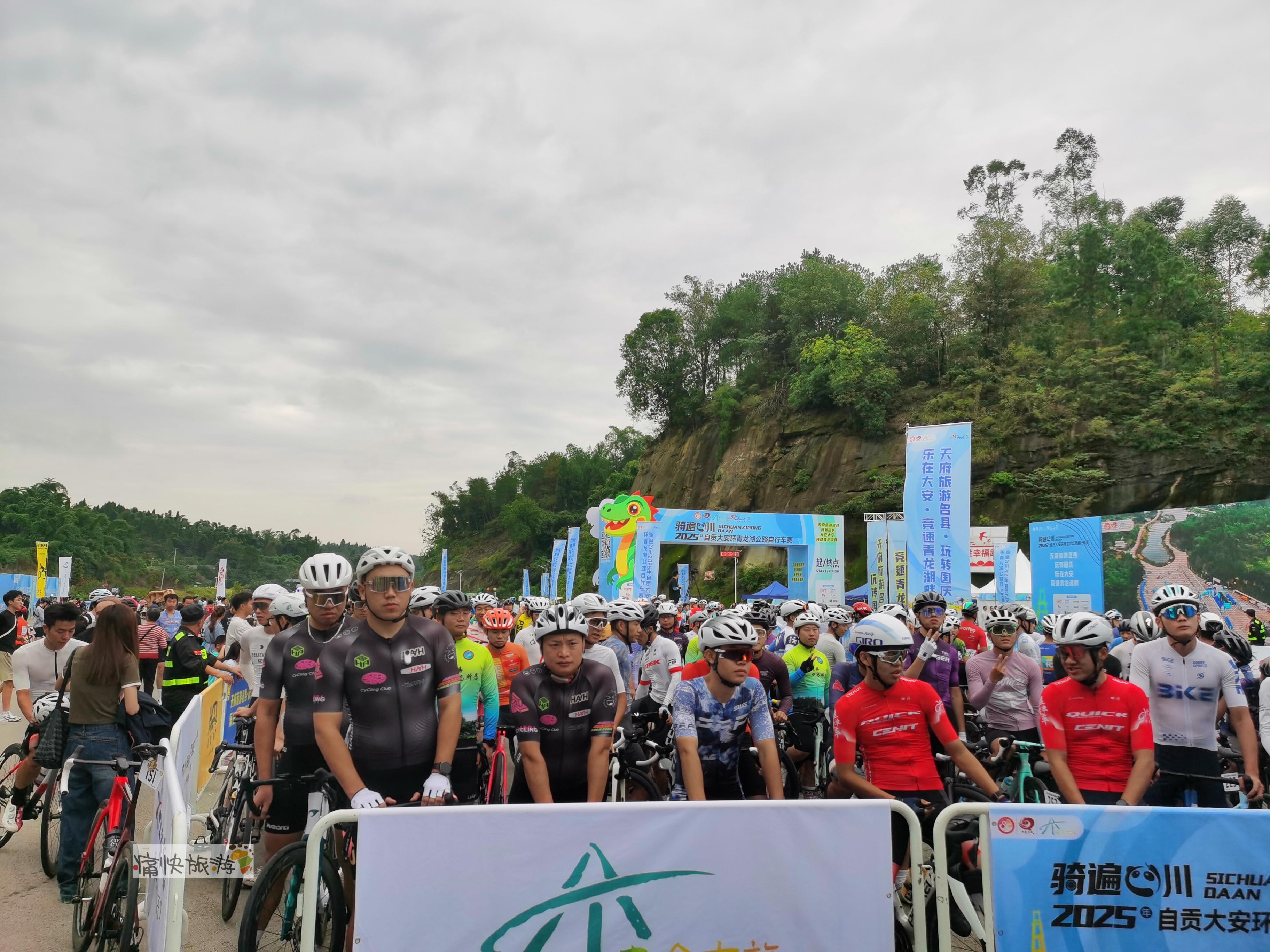 昨天(10月3日)上午八点三十分,随着发令汽笛响彻湖畔,首届“骑遍四川・2025年自贡大安环青龙湖公路自行车赛”在青龙湖