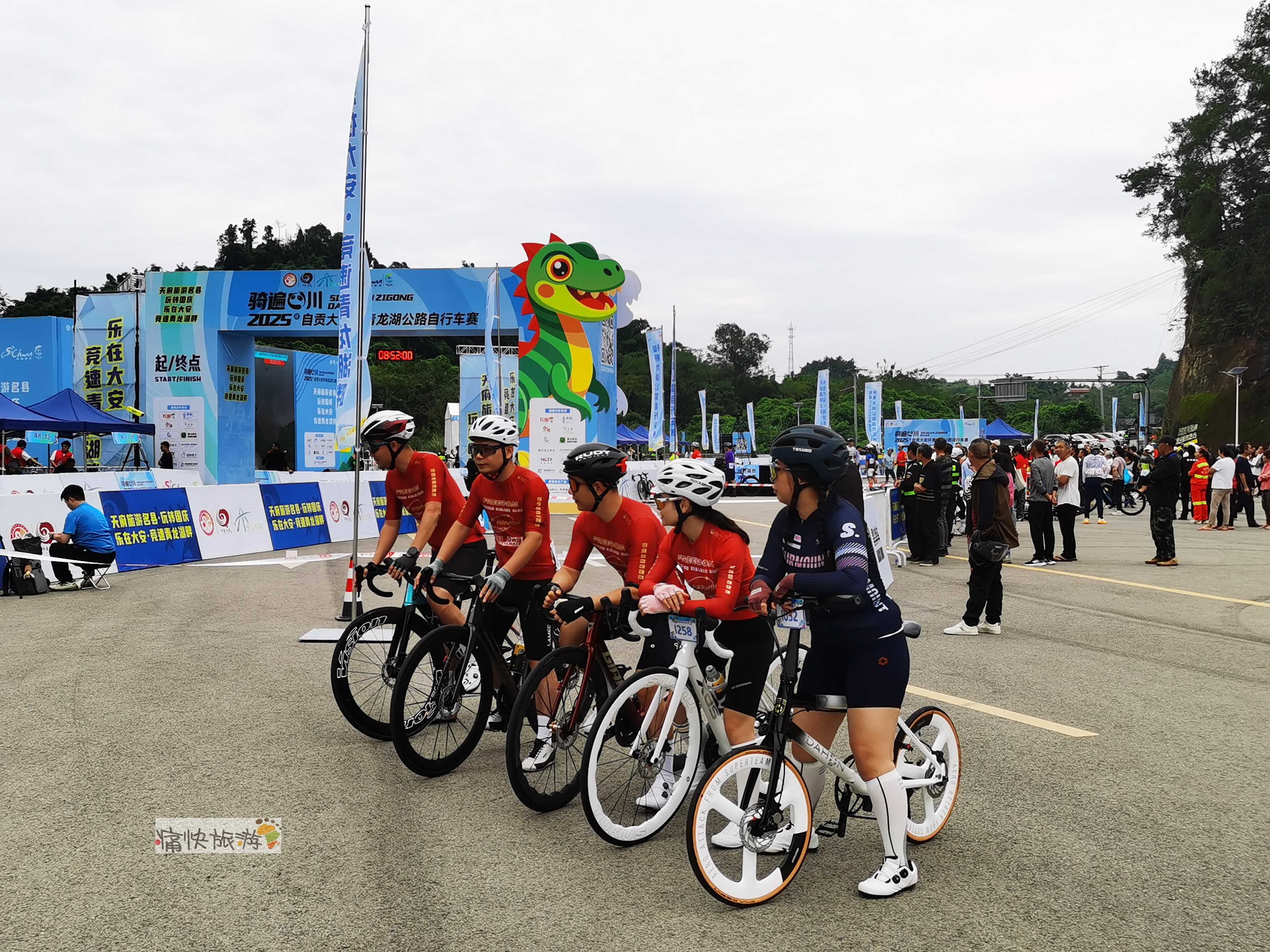 上午八点三十分,随着发令汽笛响起,男子公路精英组率先出发,首届“骑遍四川・2025年自贡大安环青龙湖公路自行车赛”正式拉开帷幕。