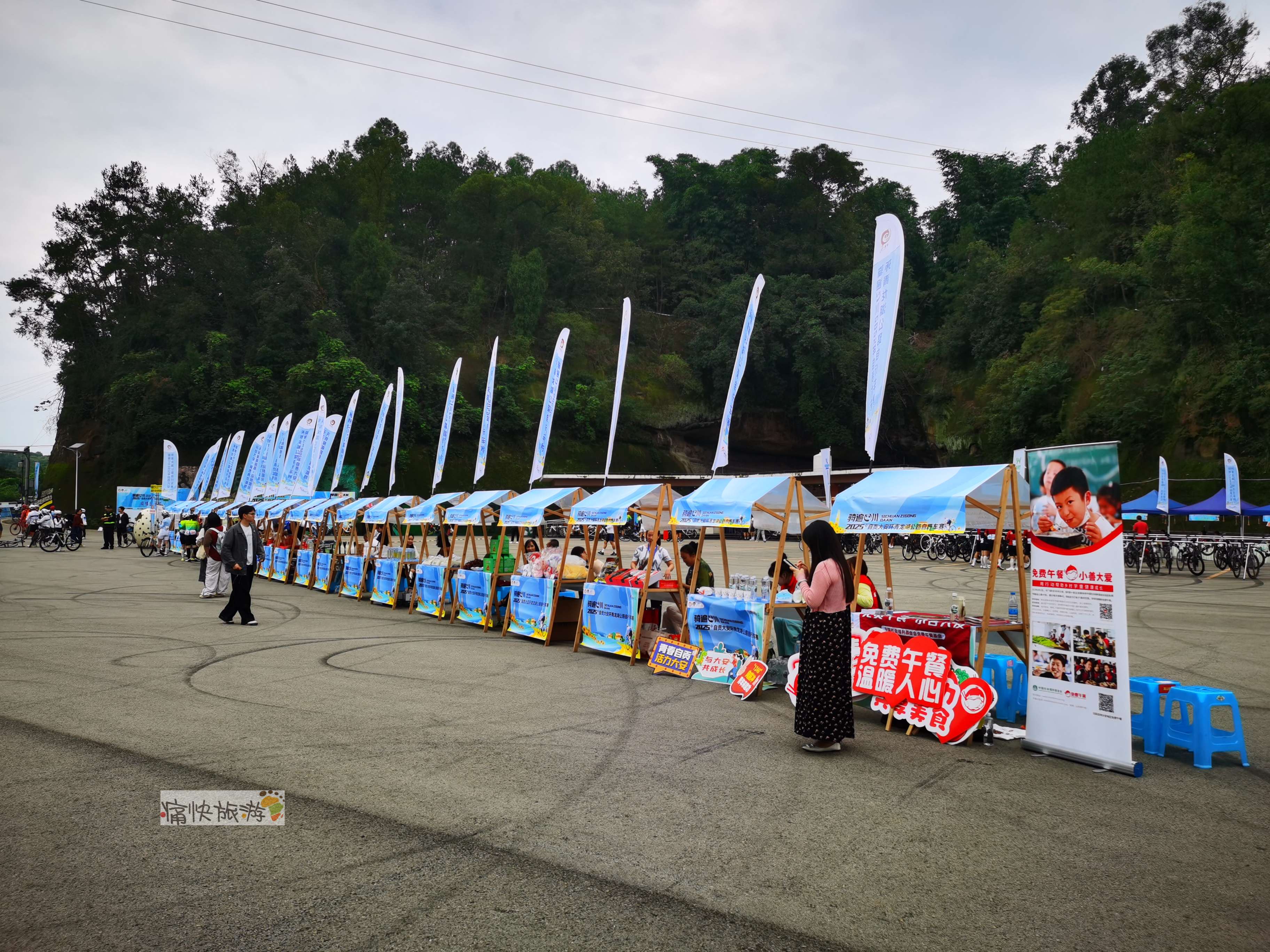 青龙湖广场设置有互动展示区、美食集市及非遗展示区,观众可在观赛之余品尝牛佛烘肘、冷吃兔等盐帮菜美食,欣赏胡氏泥塑、曾氏竹雕等自贡非遗展演。