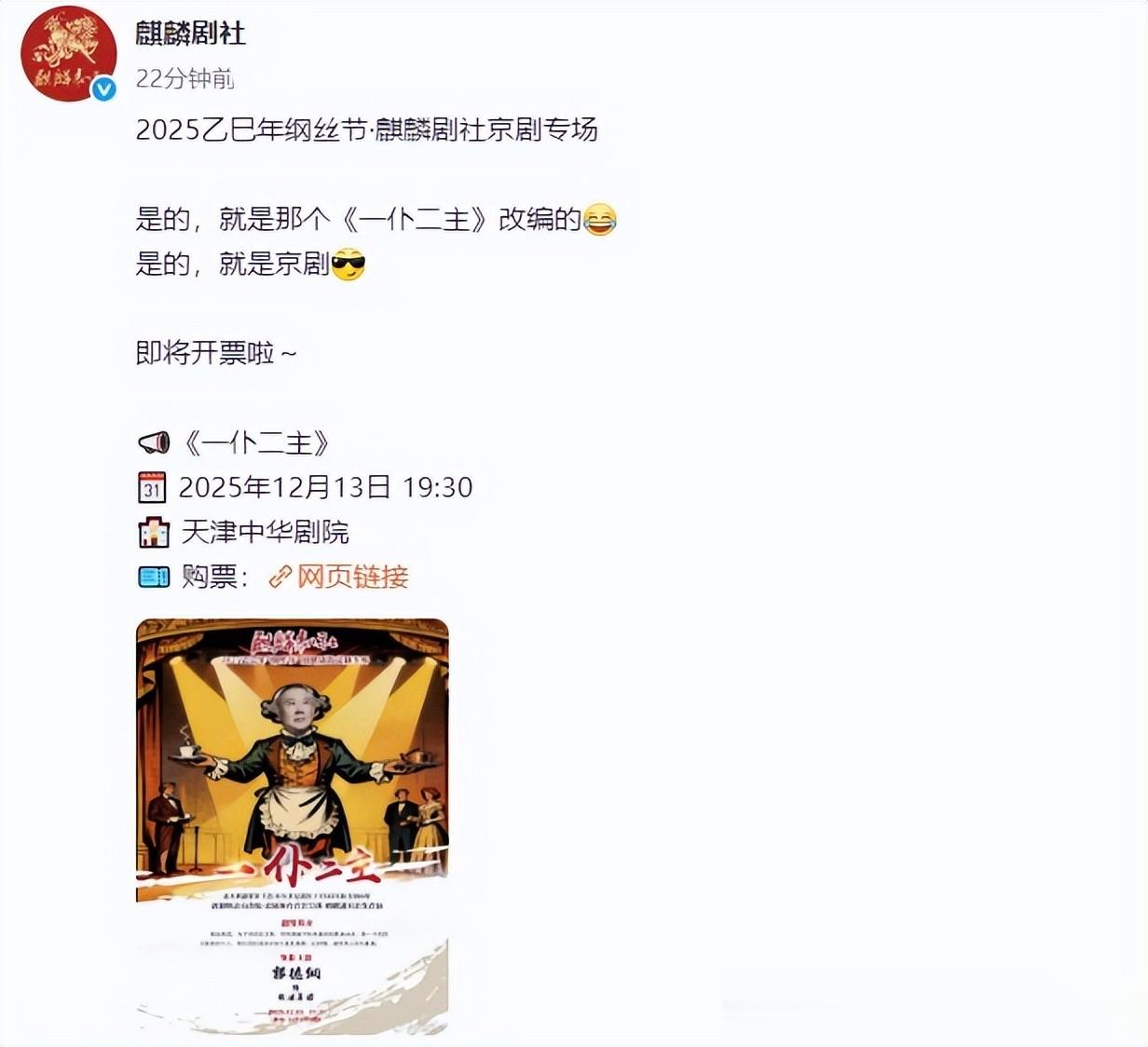 对于今年纲丝节的安排,郭德纲在麒麟剧社官方抖音给了回应,揭秘改编意大利喜剧《一仆二主》,为什么要选择这个节目,为什么会选择这个节目。