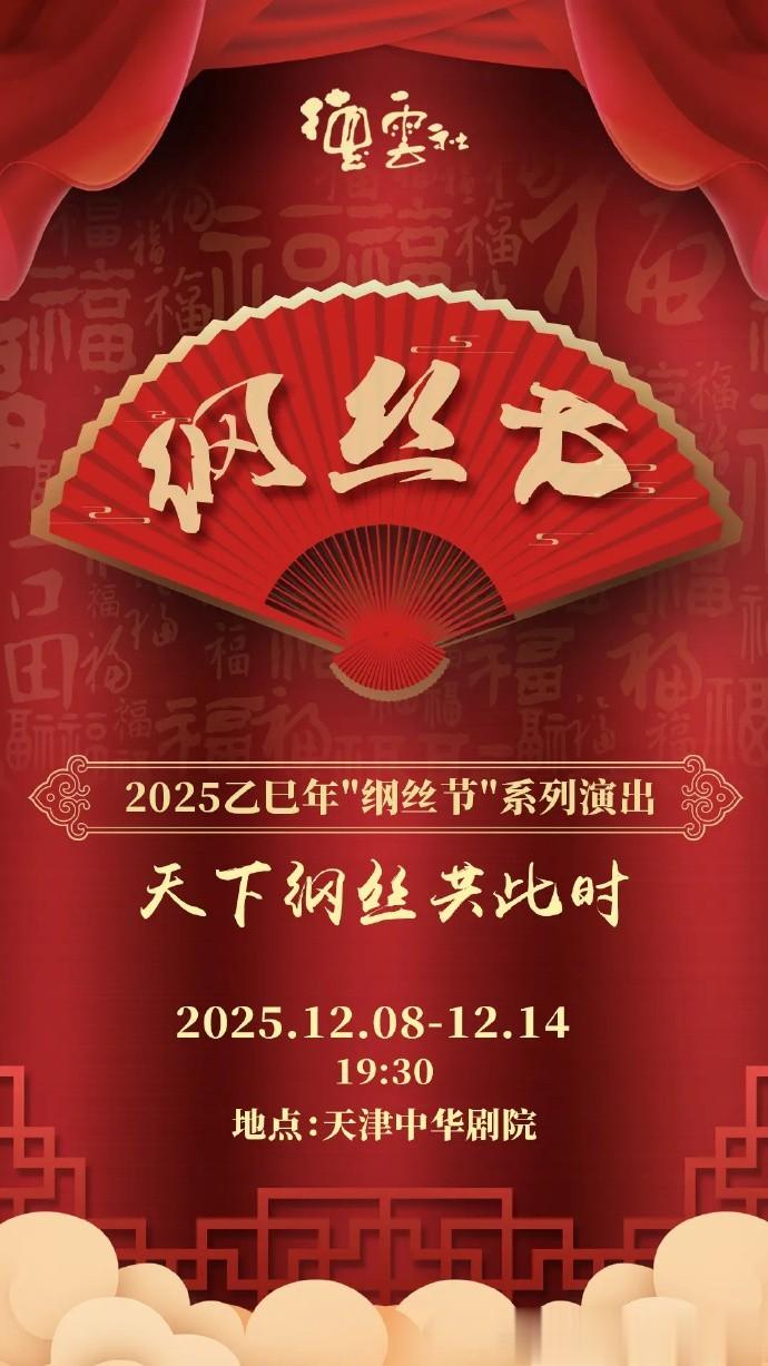 2025德云社“纲丝节”从12月8日到14日,一共七天。开幕式、第三天、第四天、第五天是相声专场。第二天是鼓曲专场,相声演员、鼓曲演员联袂登台。