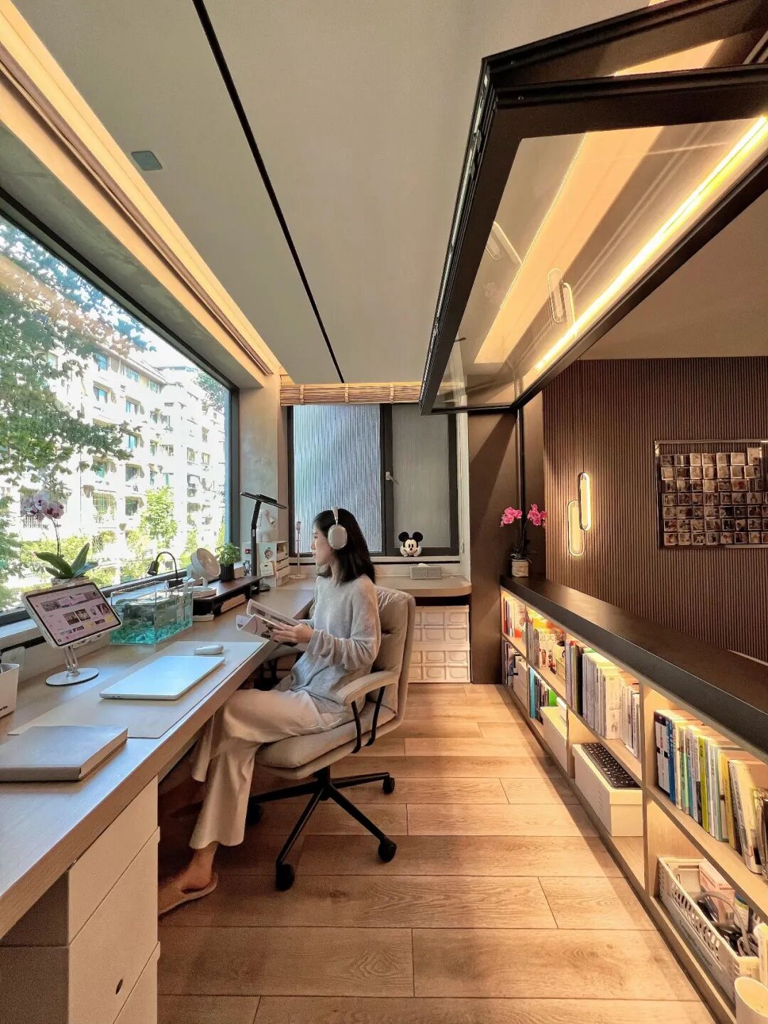 ⑤想将阳台利用起来的,如想做书房、茶室、健身角、小花房…封起来,就可以放心折腾。