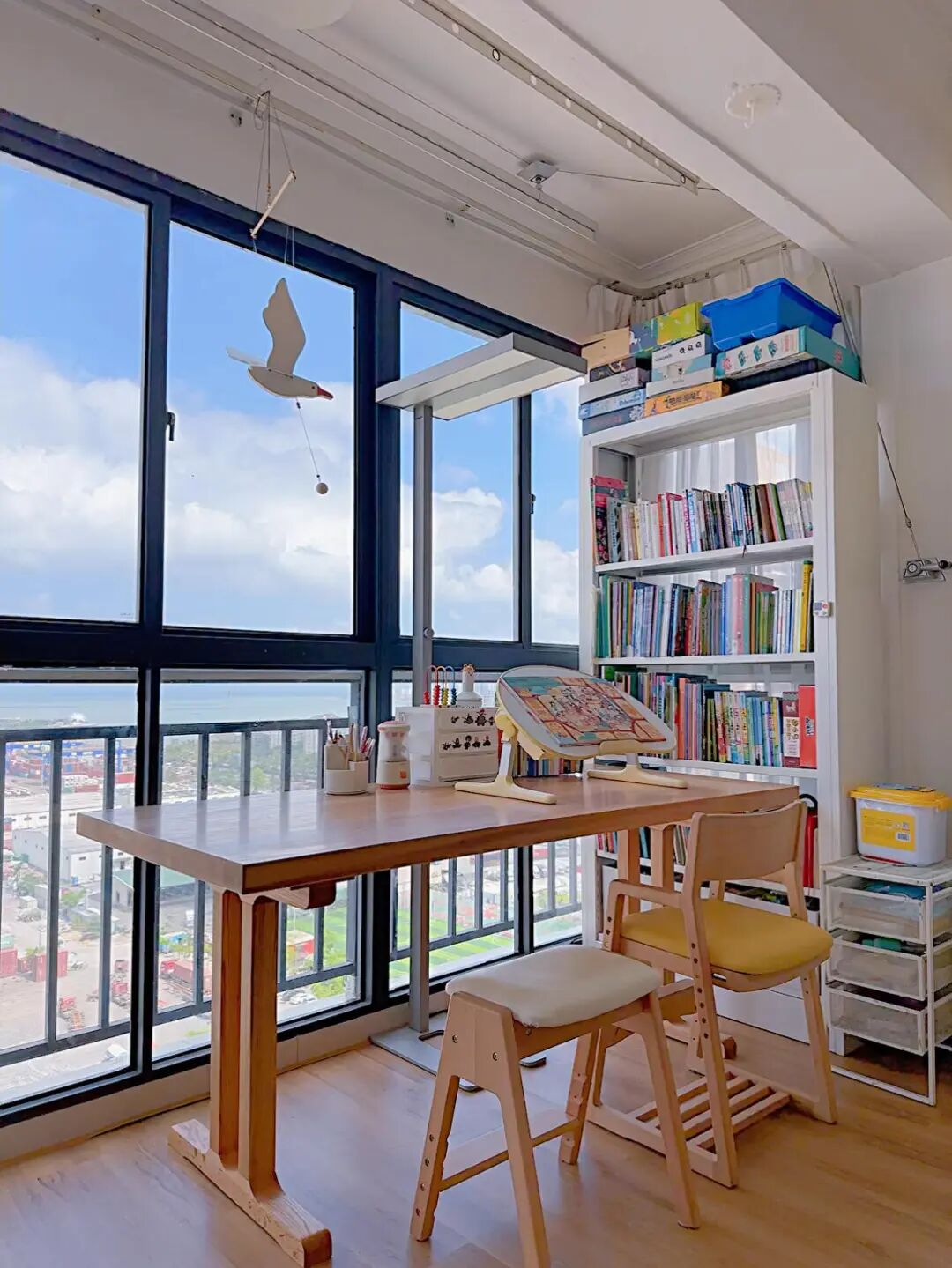 ②改成书房,利用侧面墙做书架,面对窗户摆张长桌,光线好风景好,累了抬头看看窗外很治愈。
