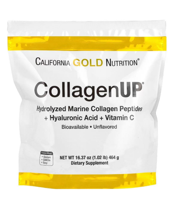 California Gold Nutrition, CollagenUP®,水解海洋胶原蛋白肽+透明质酸和维生素 C,原味,7.26 盎司(206 克)|爱美党的“内服抗老搭档”