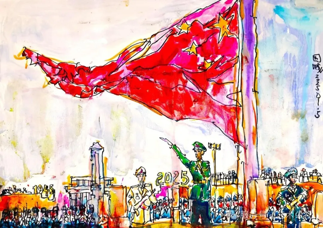 《壮观阅兵》 546mmx389mm 纸本设色 2025年
