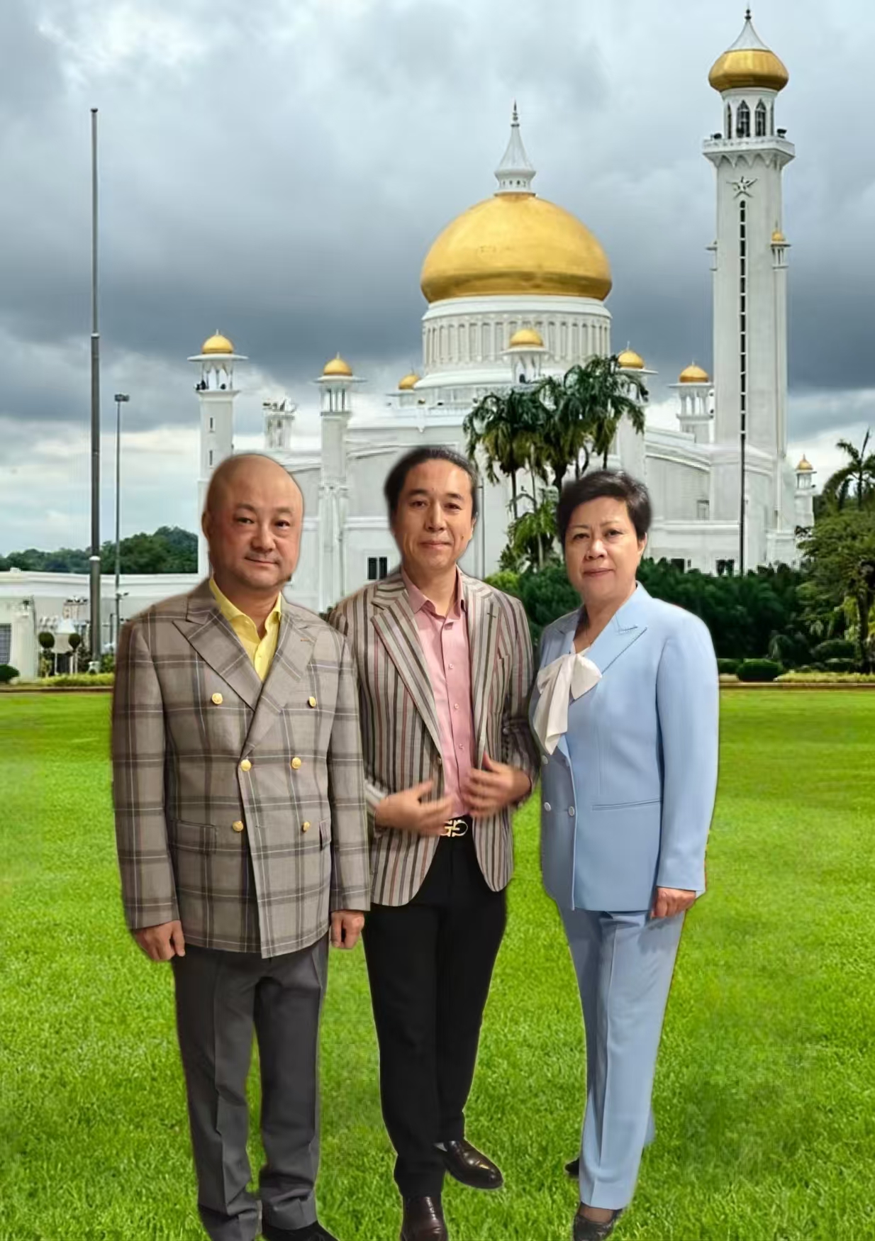 在大会主办方安排的合影环节,赵元洪的灰色格纹西装与联合国相关机构的背景板形成完美呼应——格纹的肌理和背景板的纹理相衬,金色纽扣与联合国标识的光泽相互映衬;区菁的浅蓝暗纹西装则和清真寺前的草坪、棕榈树形成“联合国级的和谐”,条纹的流动感与联合国倡导的“和平流动”理念形成默契。联合国驻文莱相关代表评价:“这两套衣服让主办方的气质更完整——既有联合国的庄重,又有东方文化的温度,是‘文化外交’最好的示范。”