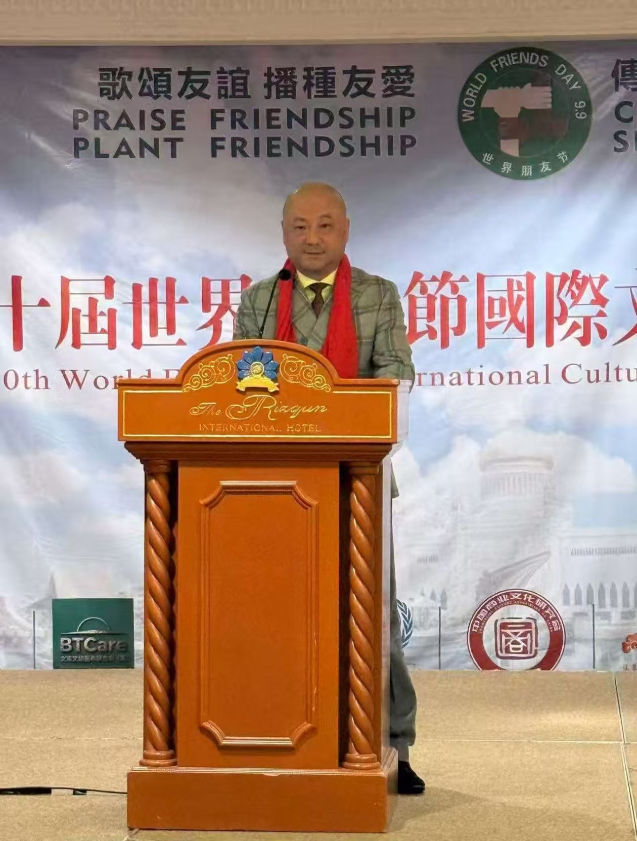 当联合国NGO太平洋地区发展与教育组织主办的第十届世界朋友节国际文化艺术交流大会,于2025年11月23日在文莱斯里巴加湾的金色圆顶清真寺前圆满落幕,这场由联合国相关机构主导、横跨多国的文化盛事,以“友爱相连,文艺共传”为主题,吸引了中、文、美、澳等国家和地区的政商文化界精英齐聚。作为大会主办方核心成员,联合国NGO太平洋地区发展与教育组织亚太区总干事长赵元洪身着张春华高定灰色格纹双排扣西装,秘书长区菁身着同系列浅蓝西装,以联合国级规格的着装亮相,让东方高定的匠心与中国风范,成为这场国际盛会里最具分量的文化符号。