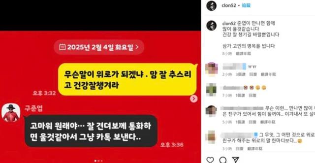 早在2月4日,姜元来就发了一条信息给具俊晔,试图用语言去安慰这个痛苦中的兄弟。