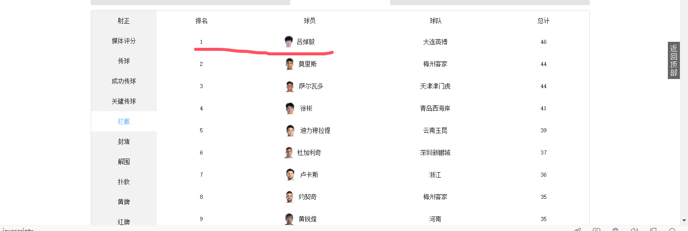截至中超第29轮,徐彬以41次的拦截总数,位居拦截榜第四、本土同位置第一。还有一点,他也是青岛西海岸球员,邵佳一的手下。