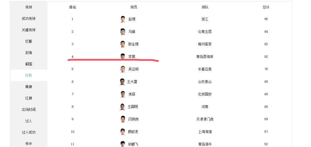 本赛季李昊是青岛西海岸的主力门将,截至中超29轮,他的拳击球总数、出击总数、扑救总数,禁区射门扑救总数等均处于中超前五水平。