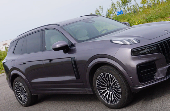 新车第一眼最吸引人的,无疑是新增的“暗夜紫”专属车漆。这种色调不同于常见的黑白灰,它在不同光线角度下能呈现出深邃的渐变质感,为这款尺寸超过5米的大车增添了一份独特的优雅与神秘感,彻底摆脱了中大型SUV容易给人的沉闷印象。搭配上领克900同款的20寸光晖轮毂,整车的力量感与精致度得到了很好的平衡。当你拉开车门,新增的“日光米”内饰配色会带来另一种视觉冲击,浅色系材质营造出的温馨明亮座舱氛围,有效减轻了大型SUV内部的压抑感,这种对座舱格调的细致打磨,看得出领克在努力提升用户的每一次上车体验。