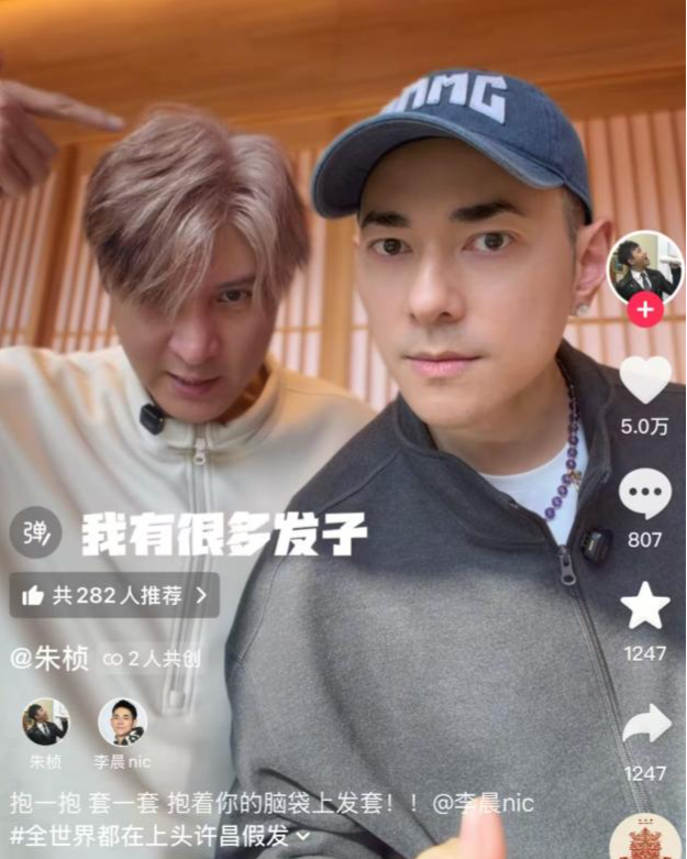 而在此前几天,他则是和好友李晨,一同录制了“假发”的视频。