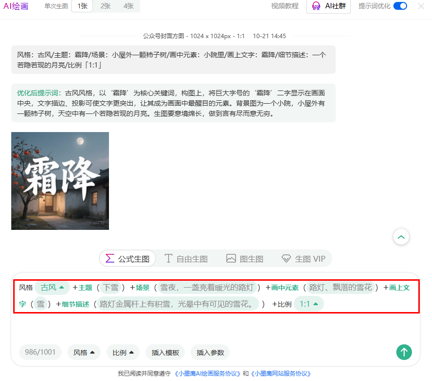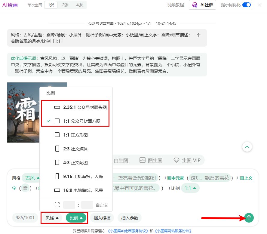 步骤一:首先,打开小墨鹰.编辑器,在左侧菜单栏中找到“AI绘画”功能,点击进入。