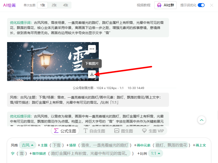步骤三:生成完成后,将两张图片分别下载保存,然后把这两张图拼合成一张图。将它们按左右顺序拼接为一张图片。